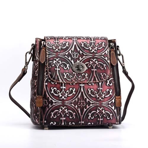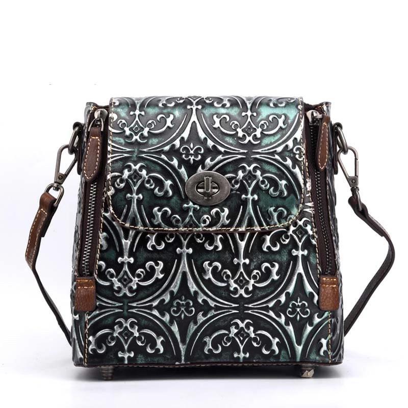 New Women cowhide shoulder diagonal backpack hand-wipe retro buckle bag vintage embossed female Genuine leather backpacks