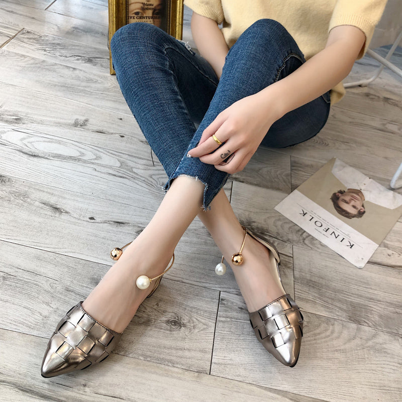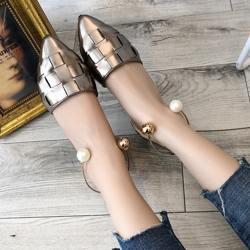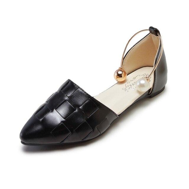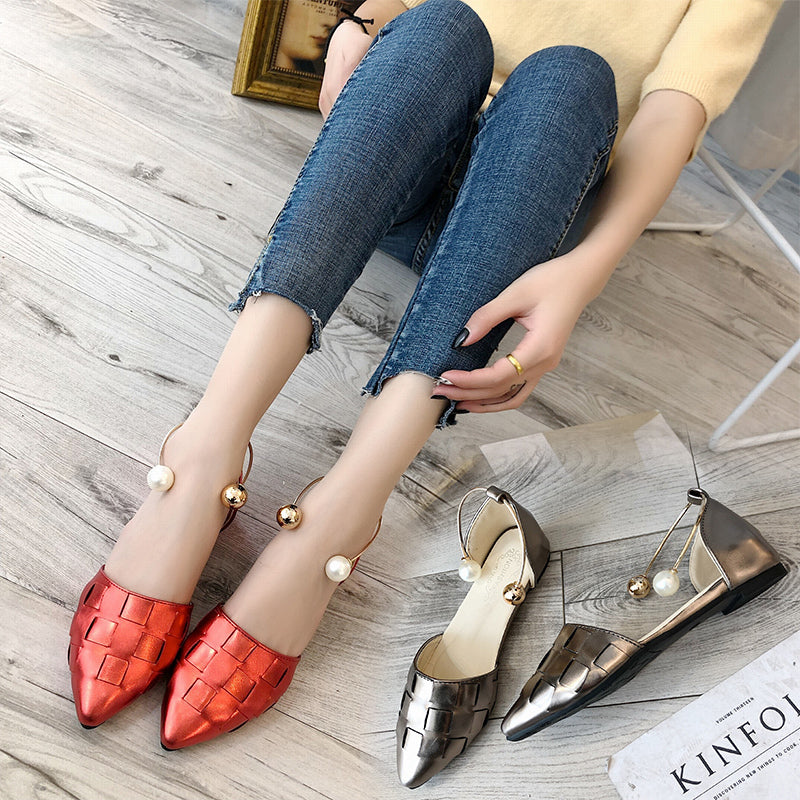New Women Solid Color Shoes Flats Heel Pearl Fashion High Quality Basic Pointed Toe Ballerina Ballet Flat Slip On Shoes Women