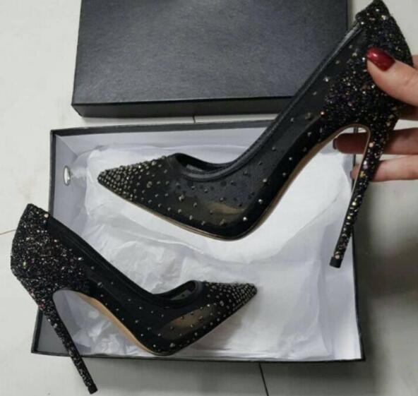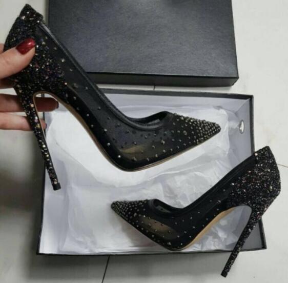 Woman Bling Crystal Stilettos Heels Sexy Elegant Black Mesh Pumps