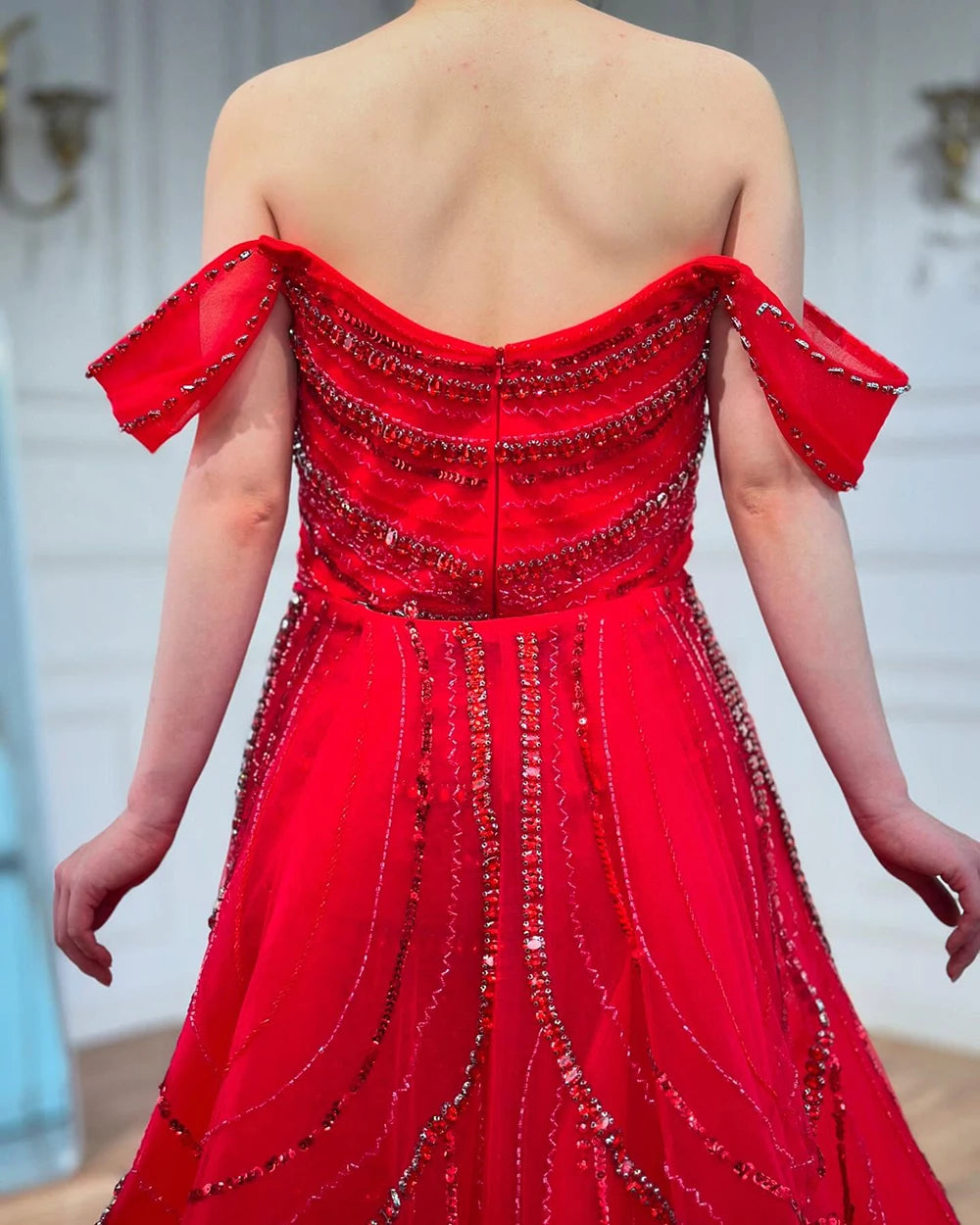 Off-Shoulder Satin Mermaid Gown with Beading – Candy Color Formal Dress for Wedding Parties