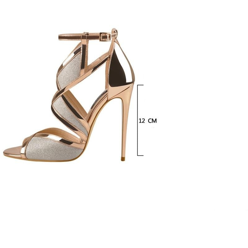 High Heel Sandals Ankle Strap Peep Toe Stiletto Gold Glitter Sandals