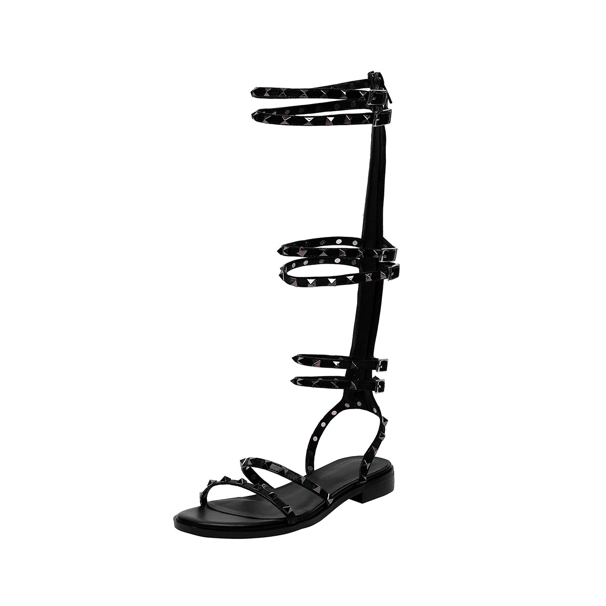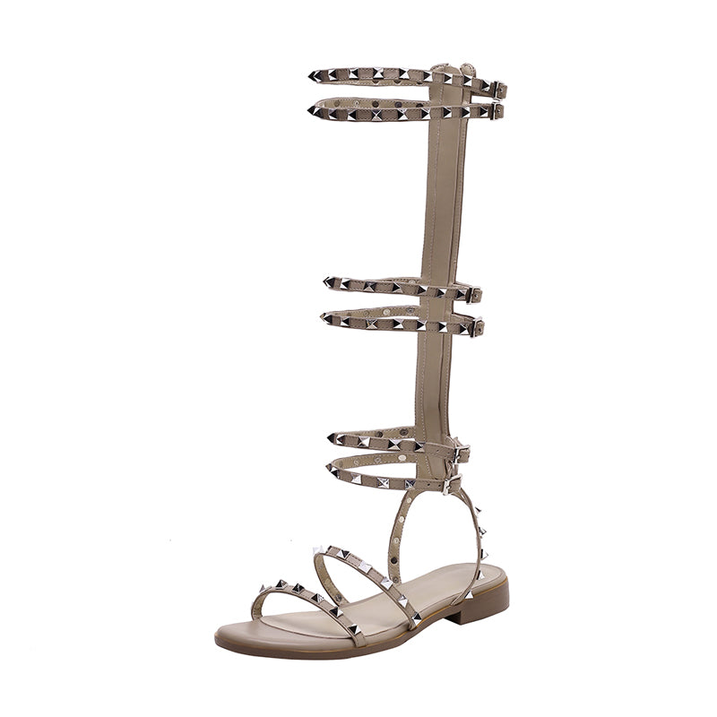 Open Toe Ladies Flat Heels Genuine Leather Rivets Sandal