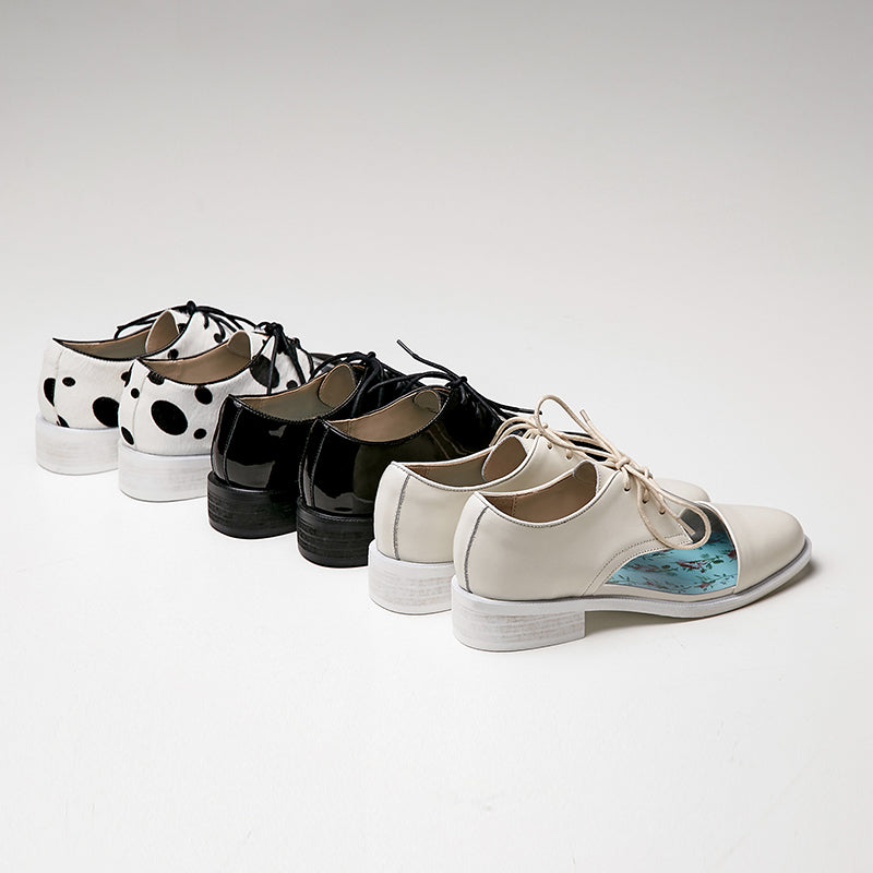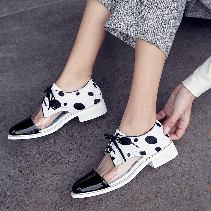 Oxfords Shoes Black Leopard Print Woman Horsehair Flats