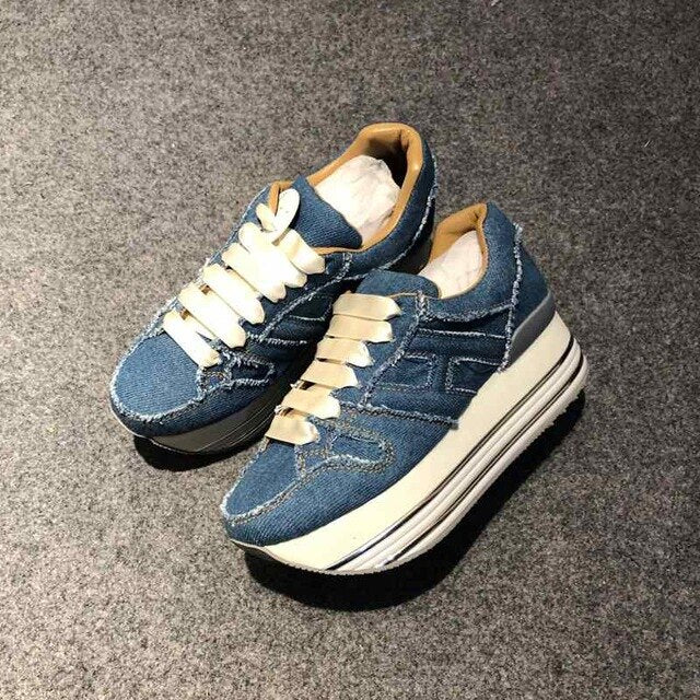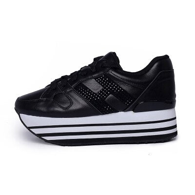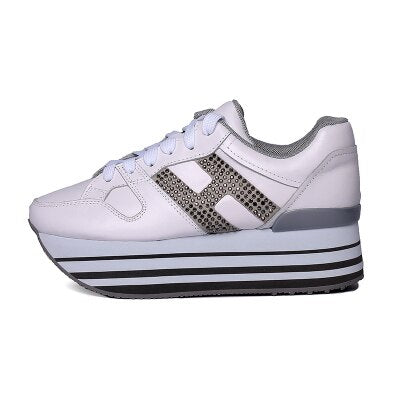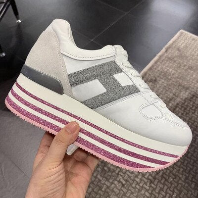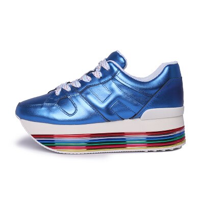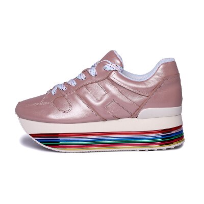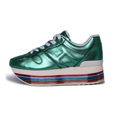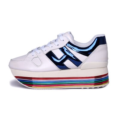Paillette Sneakers Rainbow Height Increasing Shoes Woman Casual Laces up Platform Sneakers Girls Genuine Leather Ladies Shoes