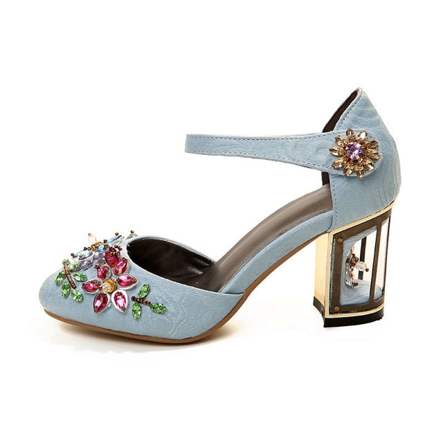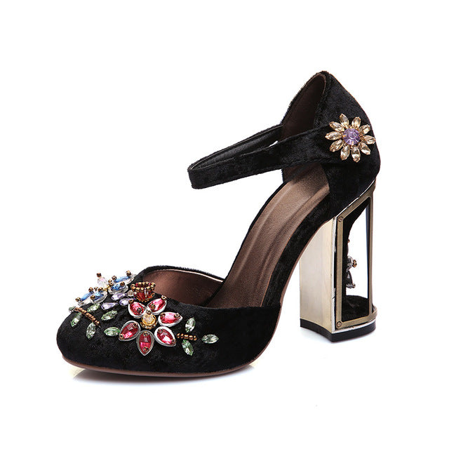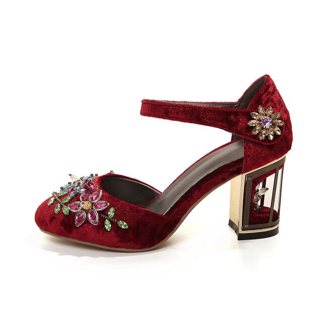 crystal flower mary janes women pumps shoes strange high heels 10cm hook & loop handmade rhinestone wedding shoes