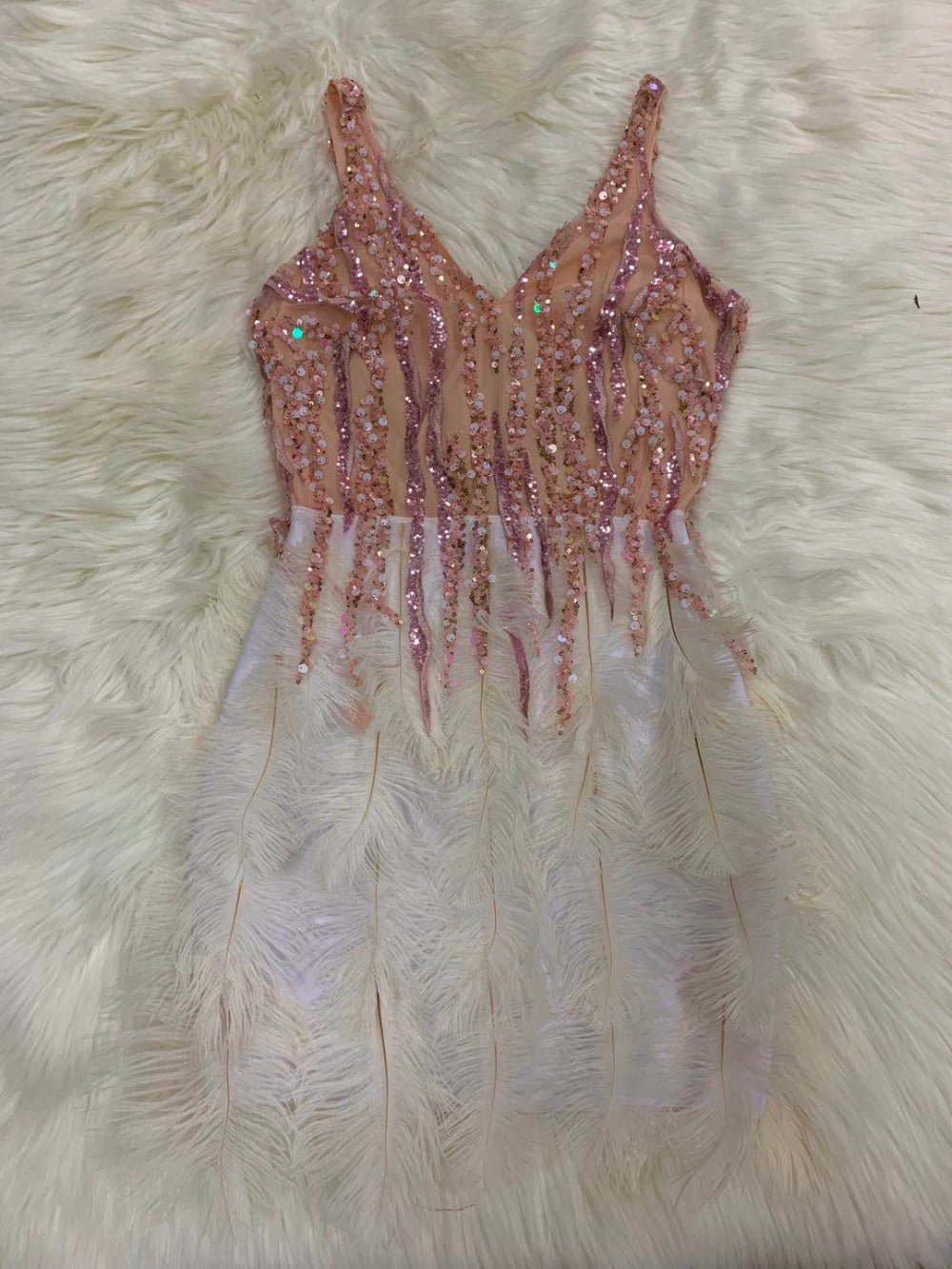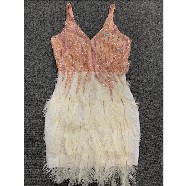 High Quality Pink Blue Feathers Rayon Bandage Dress Elegant Night Club Party Dress Vestidos