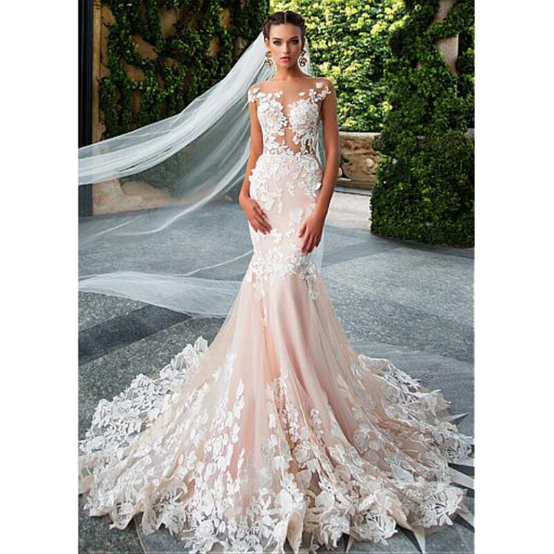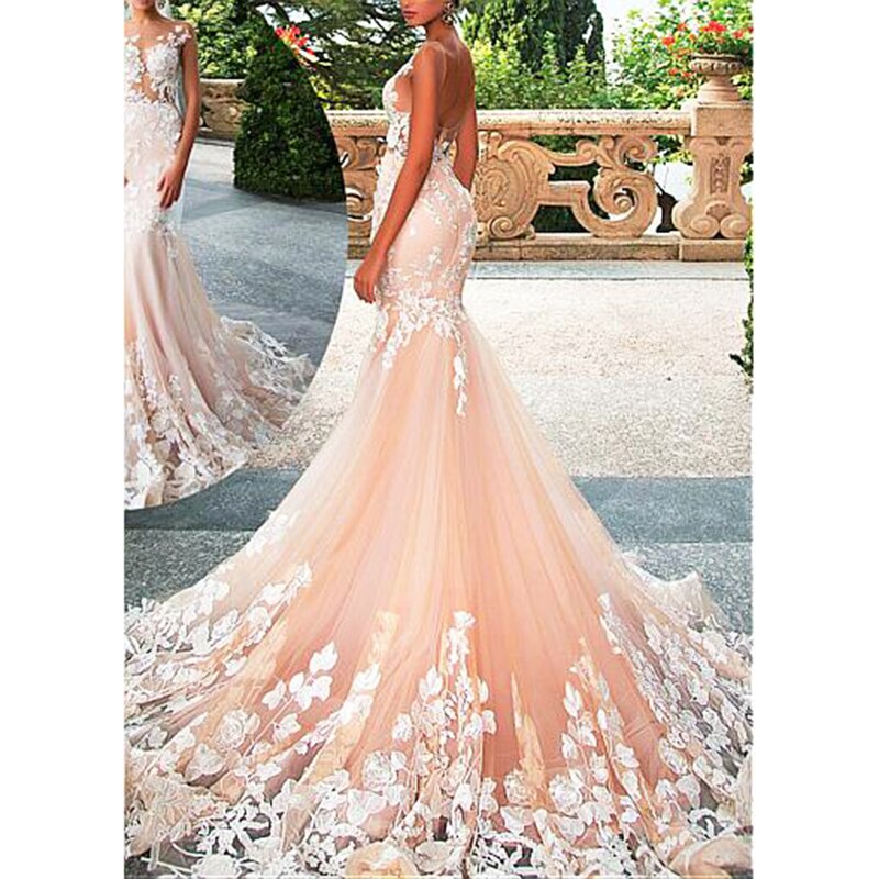 Pink Boho Wedding Dress Mermaid Lace Appliques Sex Backless Bride Dress Muslim Wedding Gowns Plus Size