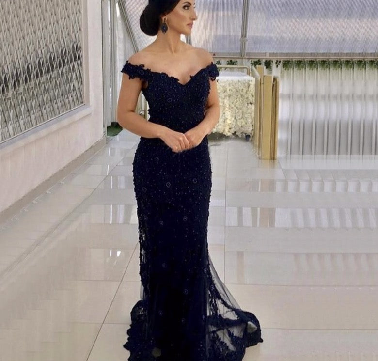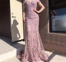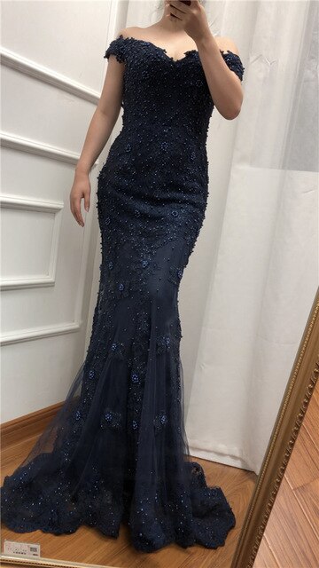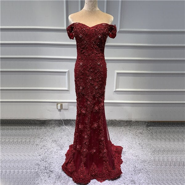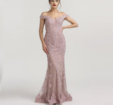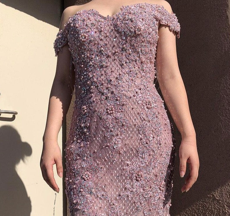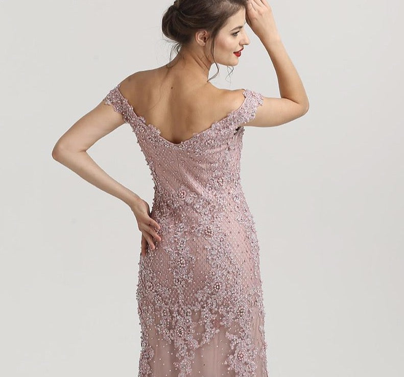Pink Mermaid Boat Neck Sexy Evening Dresses Lace Pears Diamond Elegant Fashion Formal Evening Dress
