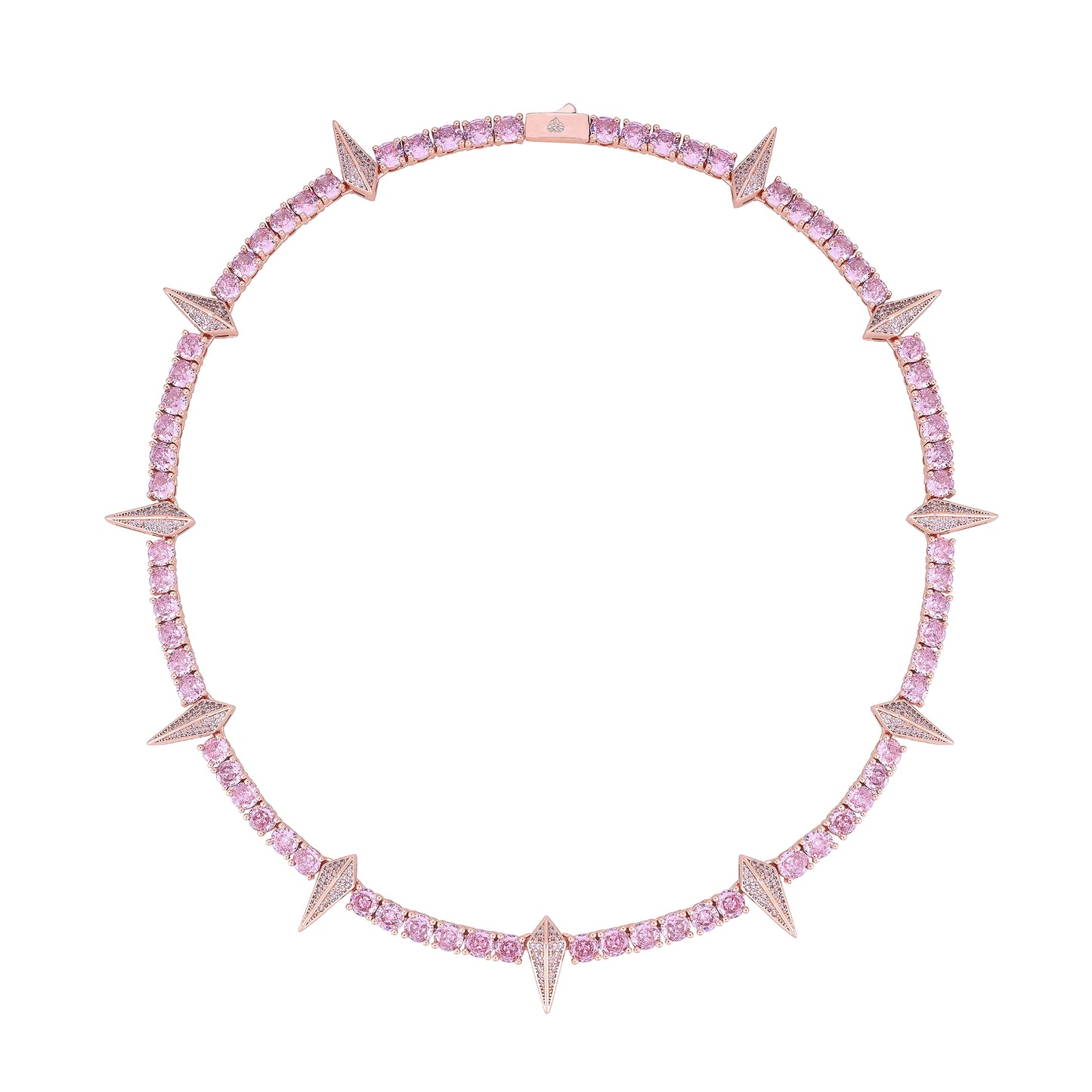 Pink Zirconia Spike Necklace, Gold-Tone, Hip-Hop Statement Piece