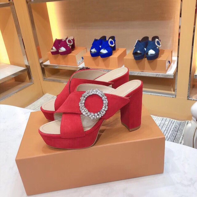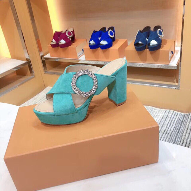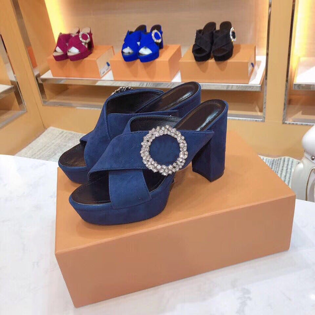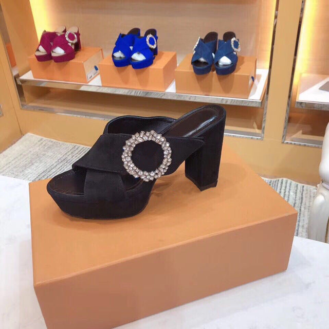 Plus Size 35-41 Women's Sandals Real Suede Leather Women's Shoes Open Toe Square Heels Summer Sandals For Woman