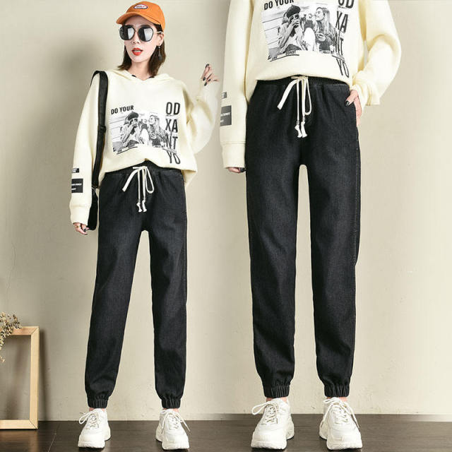 Women Autumn Winter Lace Up Warm Jeans