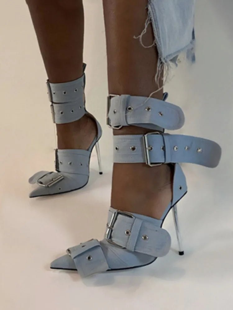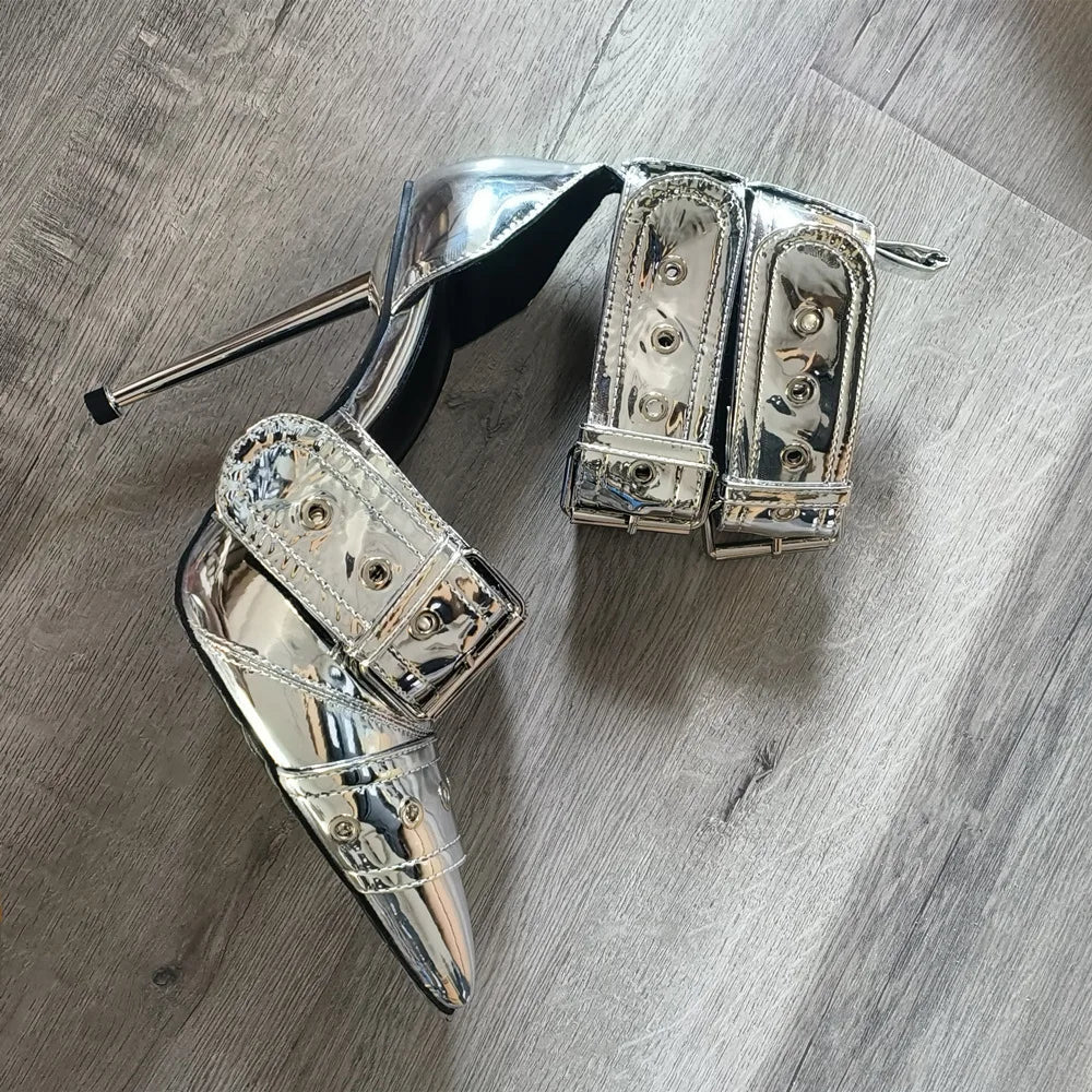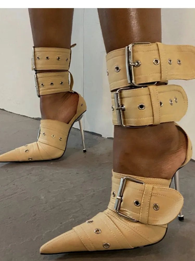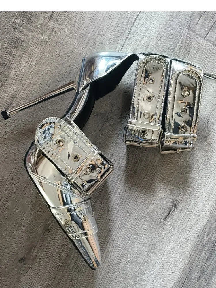 Pointed Buckle with Rivet Thin High Heel Over Knee Boots Sexy Women's 43 Large Boots