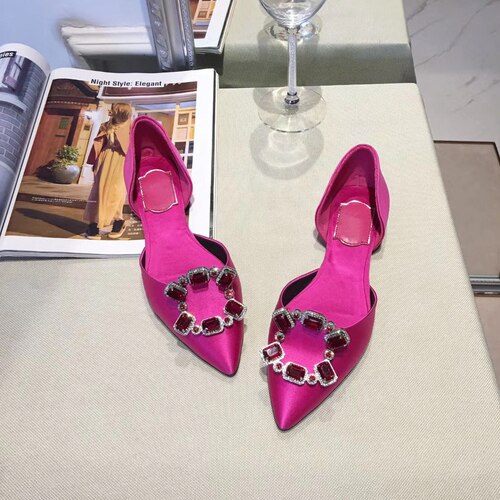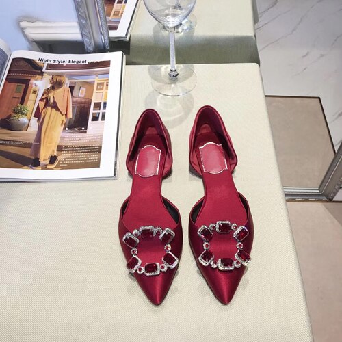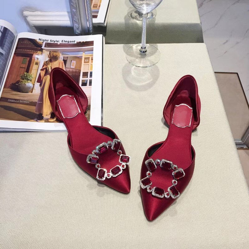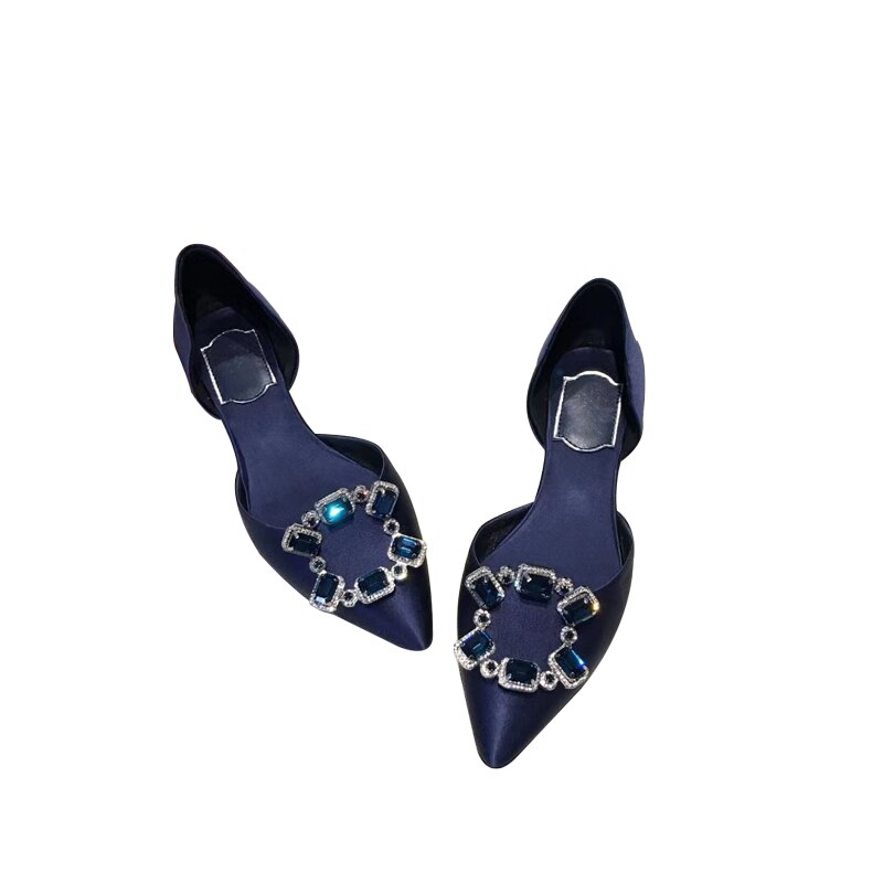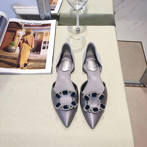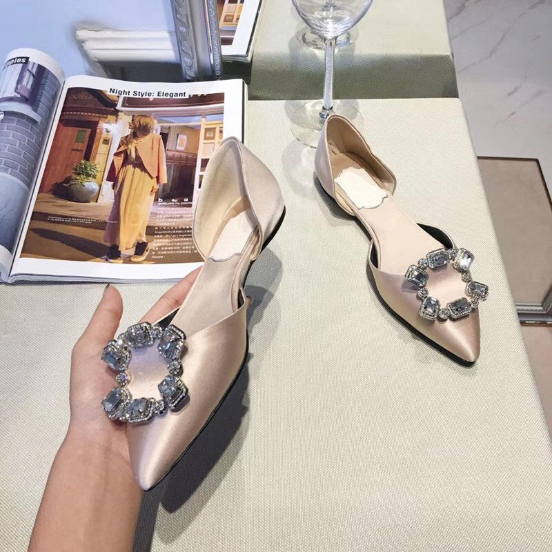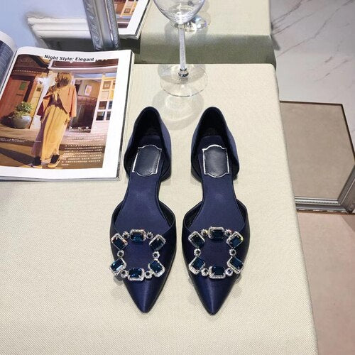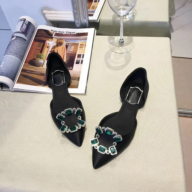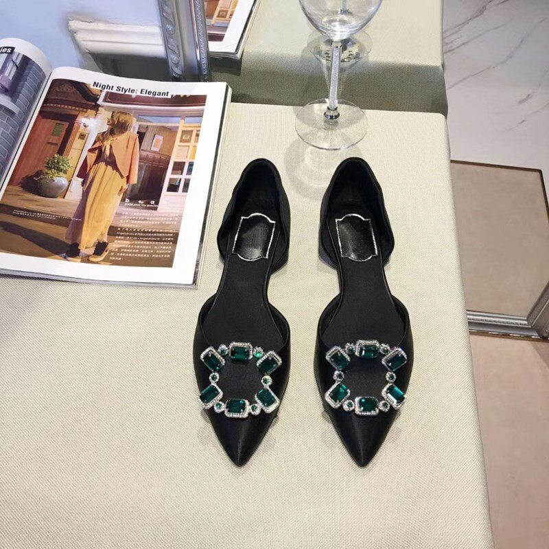 Pointed Toe Square Buckle Rhinestone Flats Casual Shoes Women