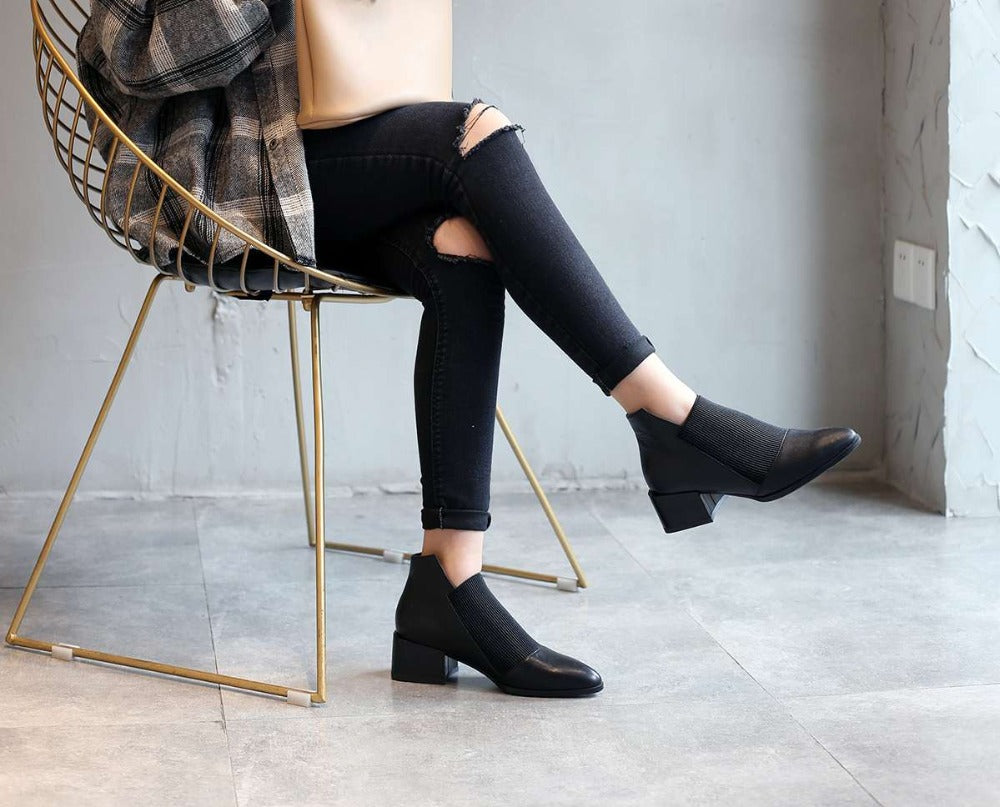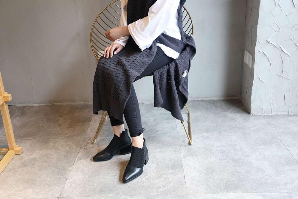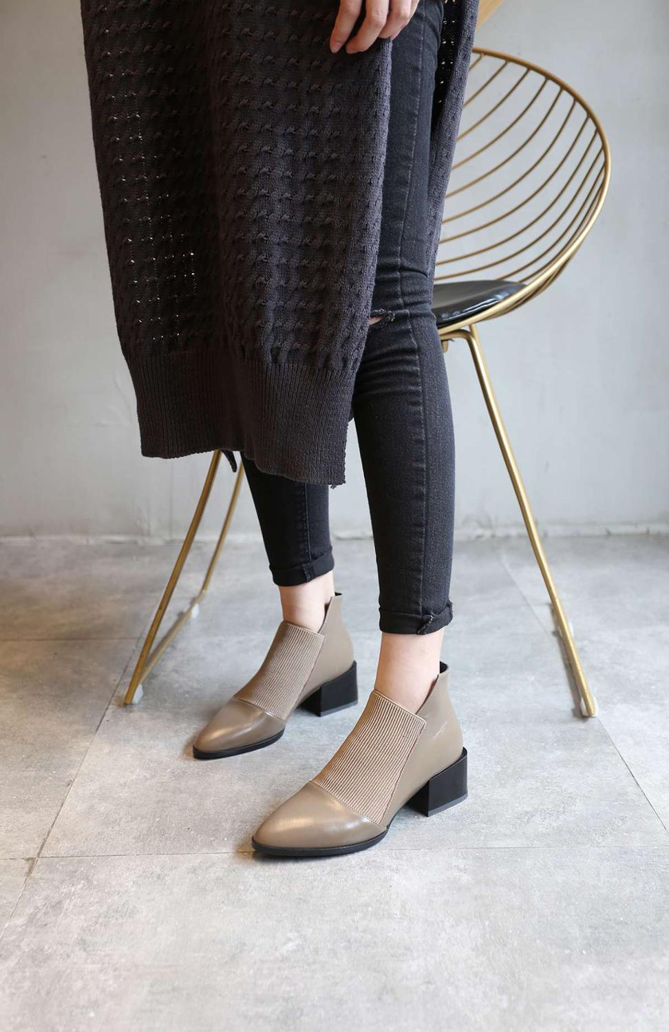 Popular chelsea boots solid classic oxford pointed toe slip on soft genuine leather spring shoes brand concise ankle boots