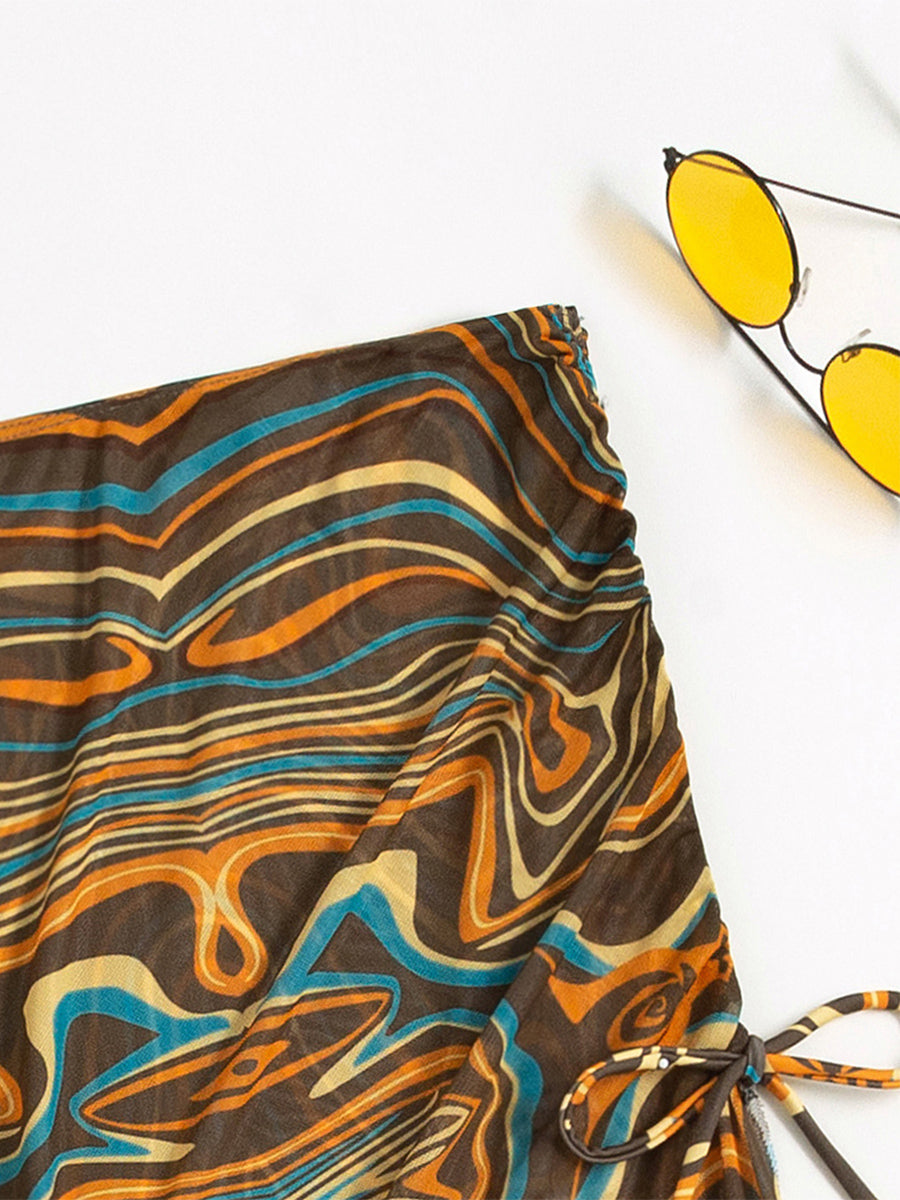 Print Bikini 2022 Mesh 3 pieces set Sexy Swimsuit Women Elegant Swimwear Female Halter swimming suit Sports Bathing suit