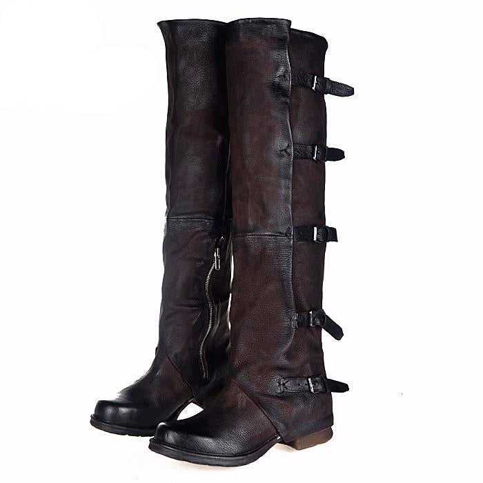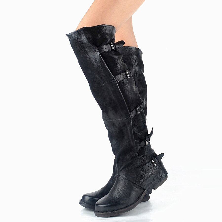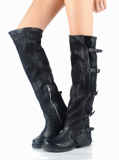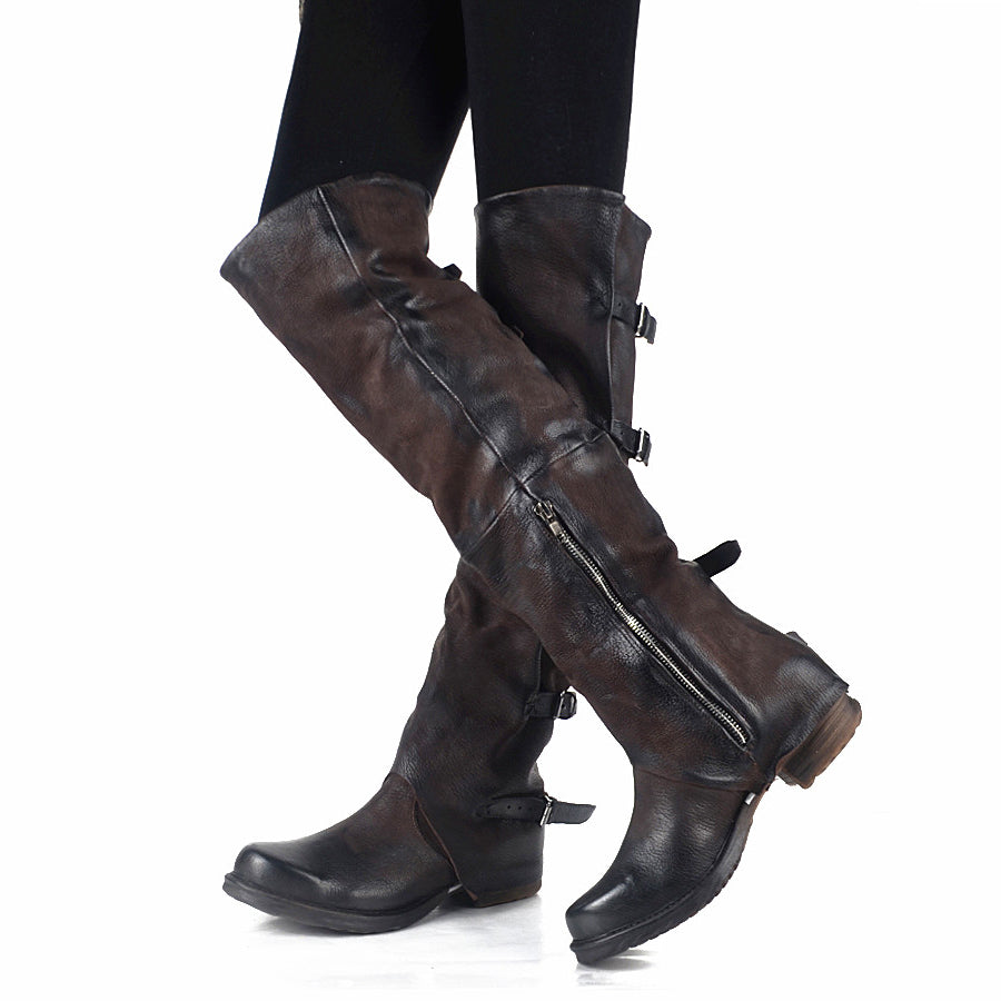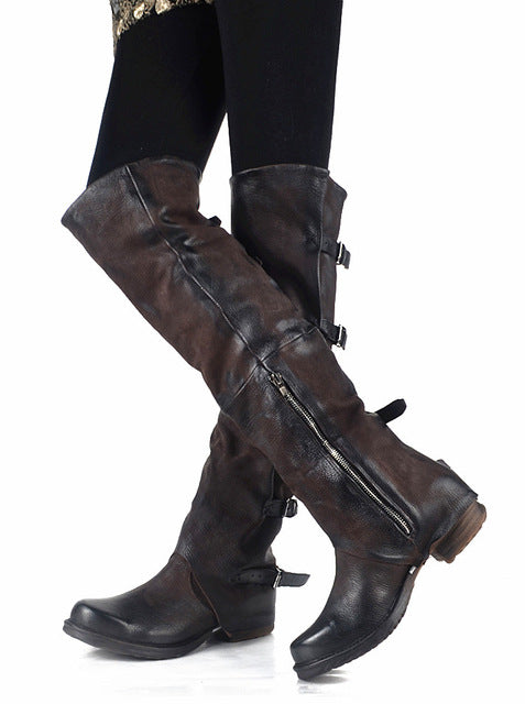 New Women Over The Knee Boots Vinatge Winter Riding Boots Flat Shoes Woman Platform Botas Zipper Buckle Boot