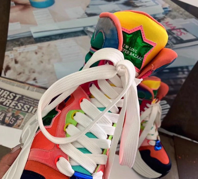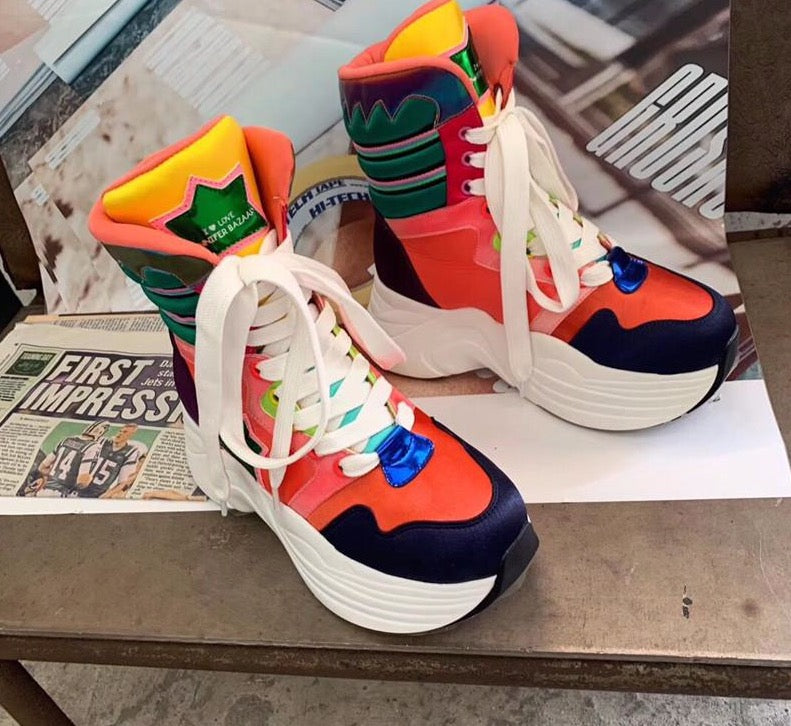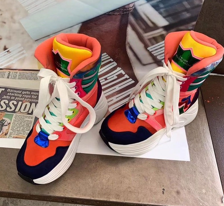 Butterfly-Knot Cross-tied Female Sneakers Shoes Colour Mixture Flat Platform Woman Shoes High-Top Platform Boots