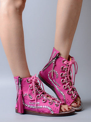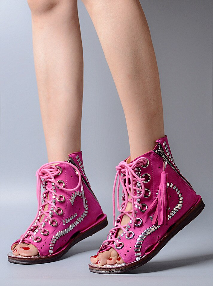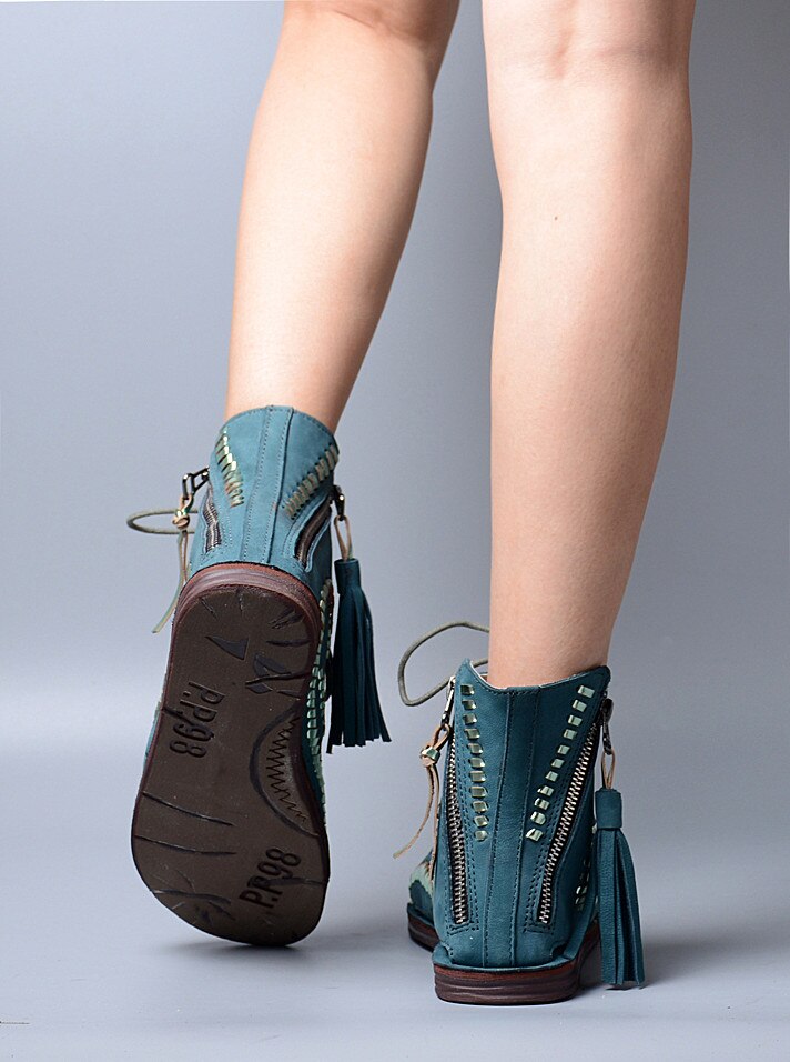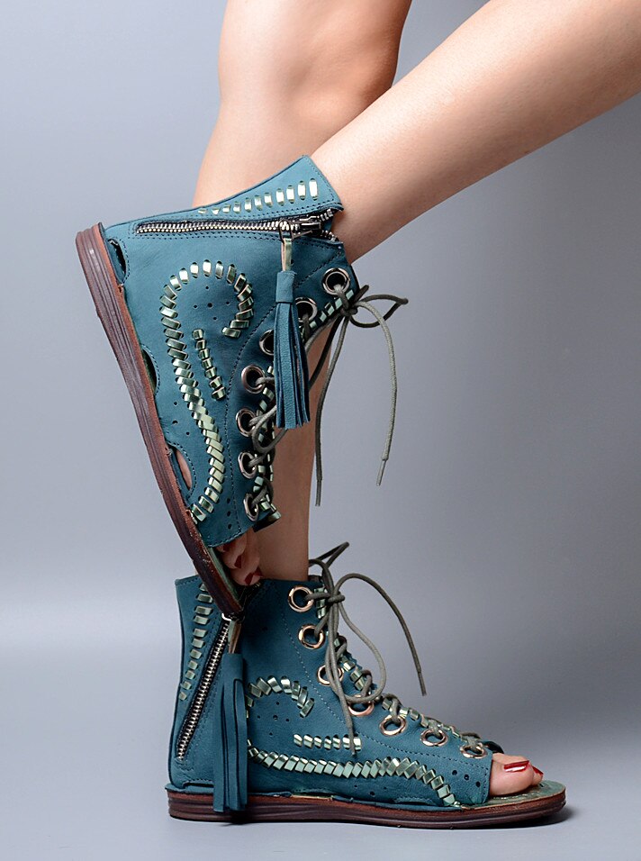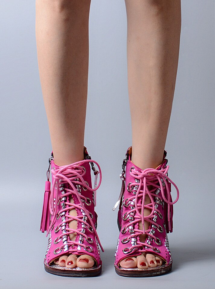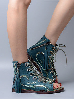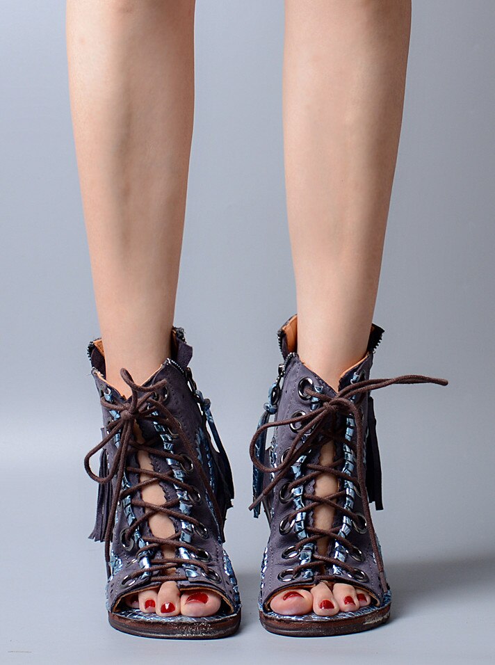 Fashion Hollow Out Tassels Cross Tied Bohemia Sandal Summer Peep Toe Low Heel Women Sandals All-match Female Shoe
