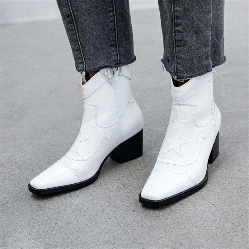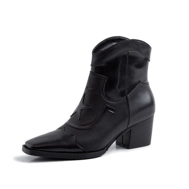 Retro Ankle Boots Women Winter Printed Genuine Leather Slip on Women Boots Shoes Woman Zipper Botines Mujer 2019