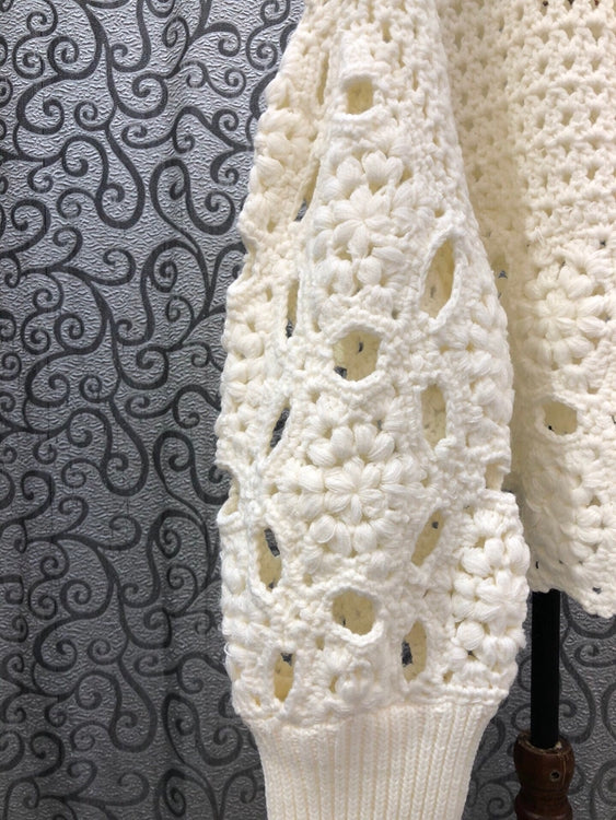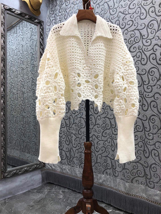 2022Spring Autumn Fashion Sweaters & Pullovers High Quality Women Turn-down Collar Crochet Knitting Long Sleeve Casual Jumpers