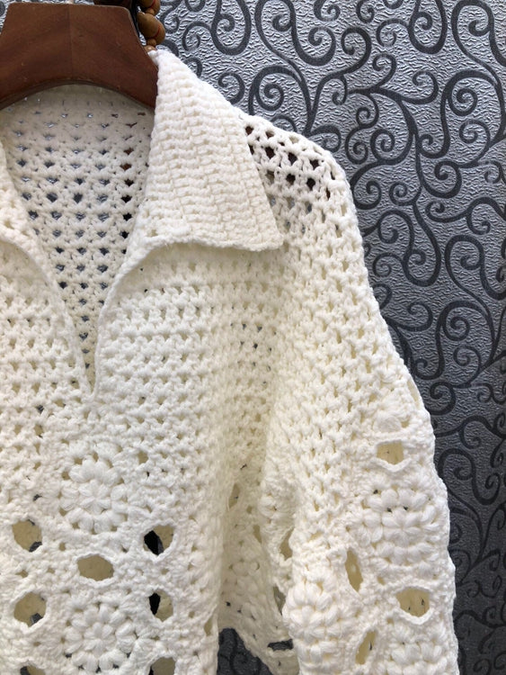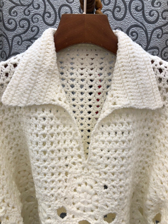 Pullovers High Quality Women Turn-down Collar Crochet Knitting
