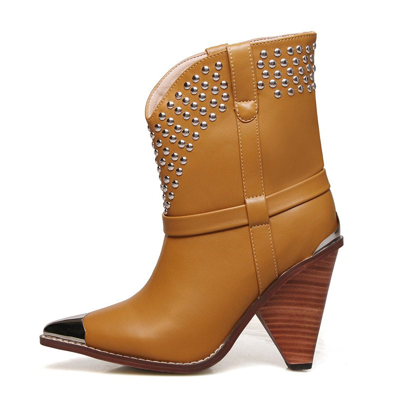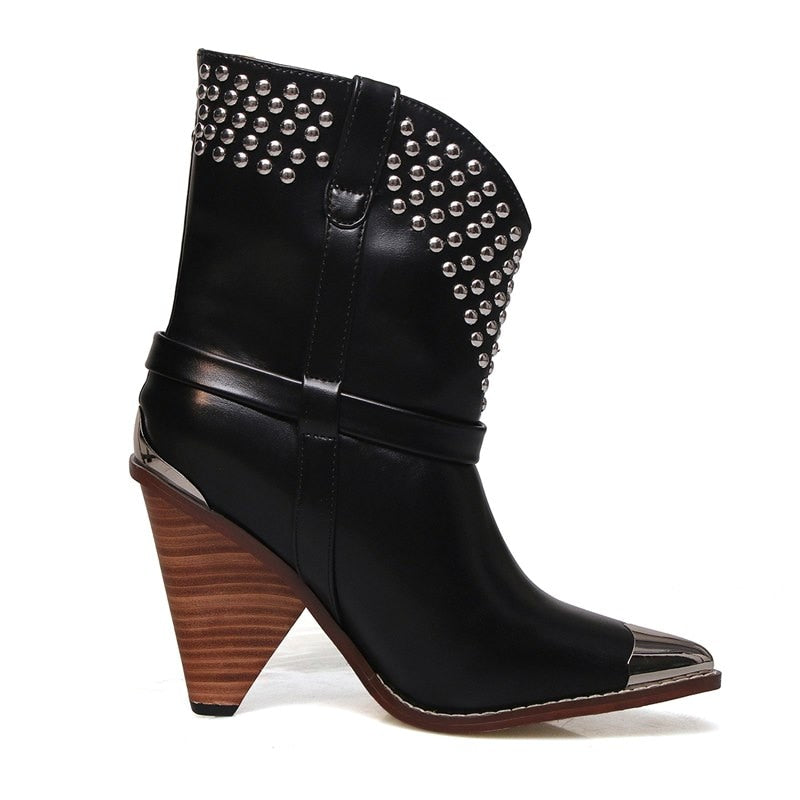 Punk shoes Microfiber leather Boots women metal rivets studded high quality Ankle Boots pointed toe middle heel botas mujer