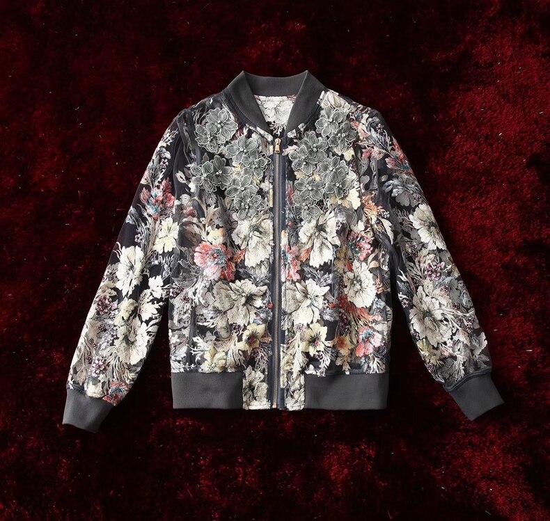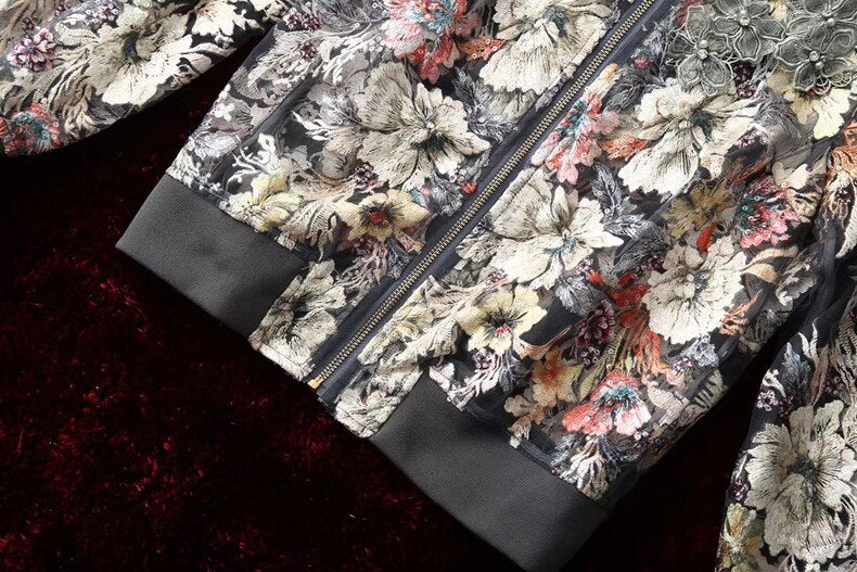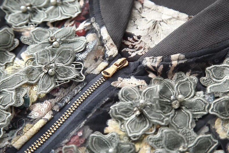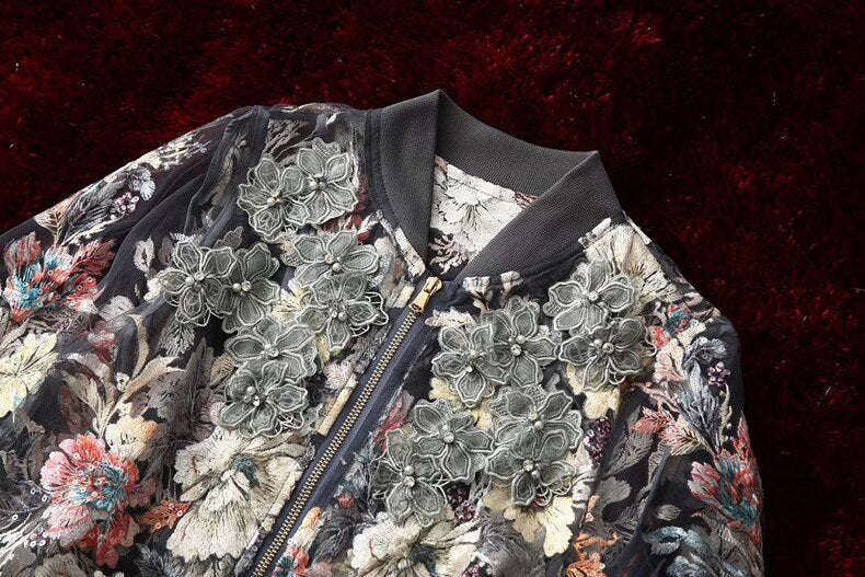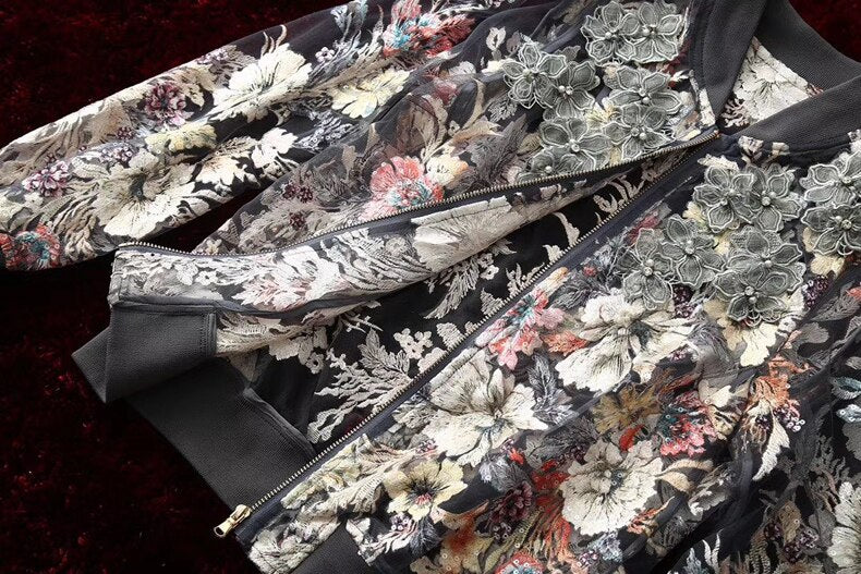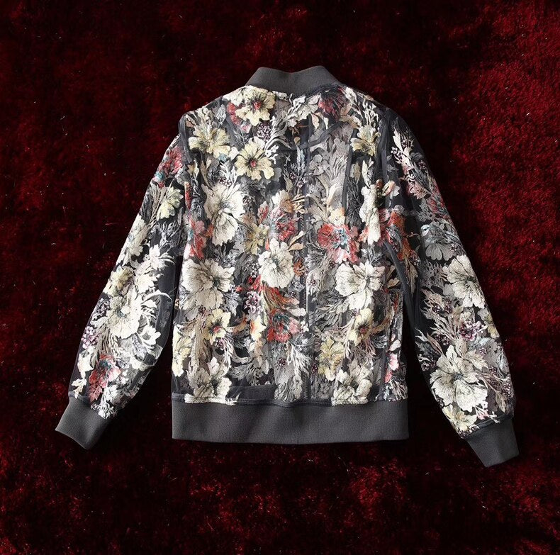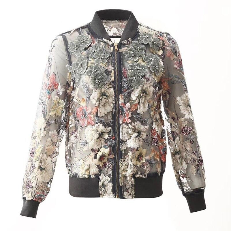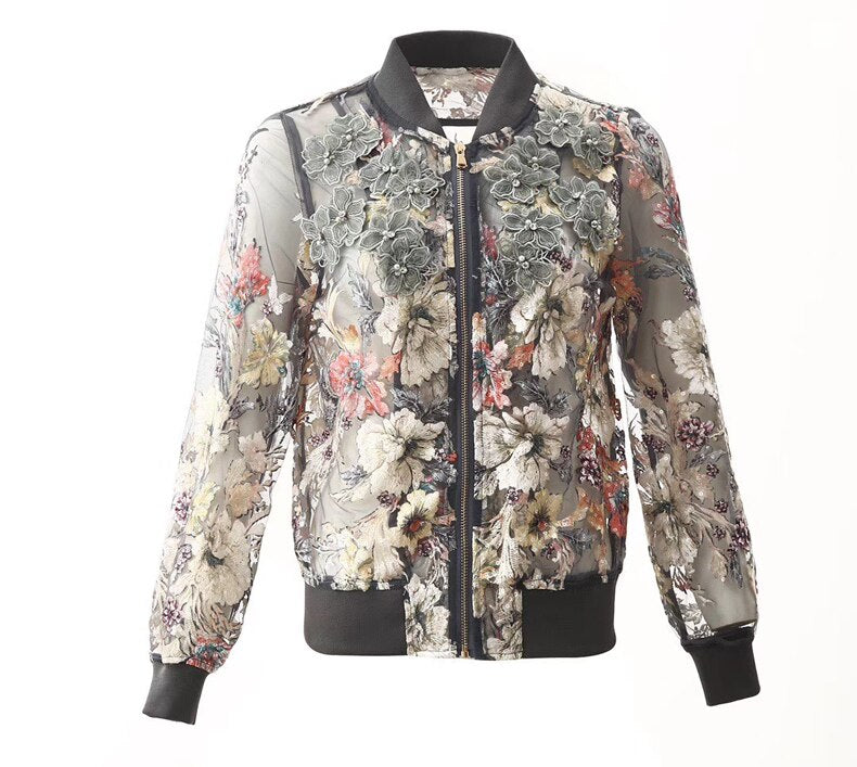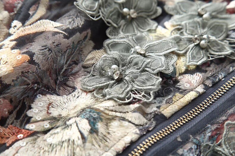 Women Long Sleeve Vintage Print Mesh embroidered Coat