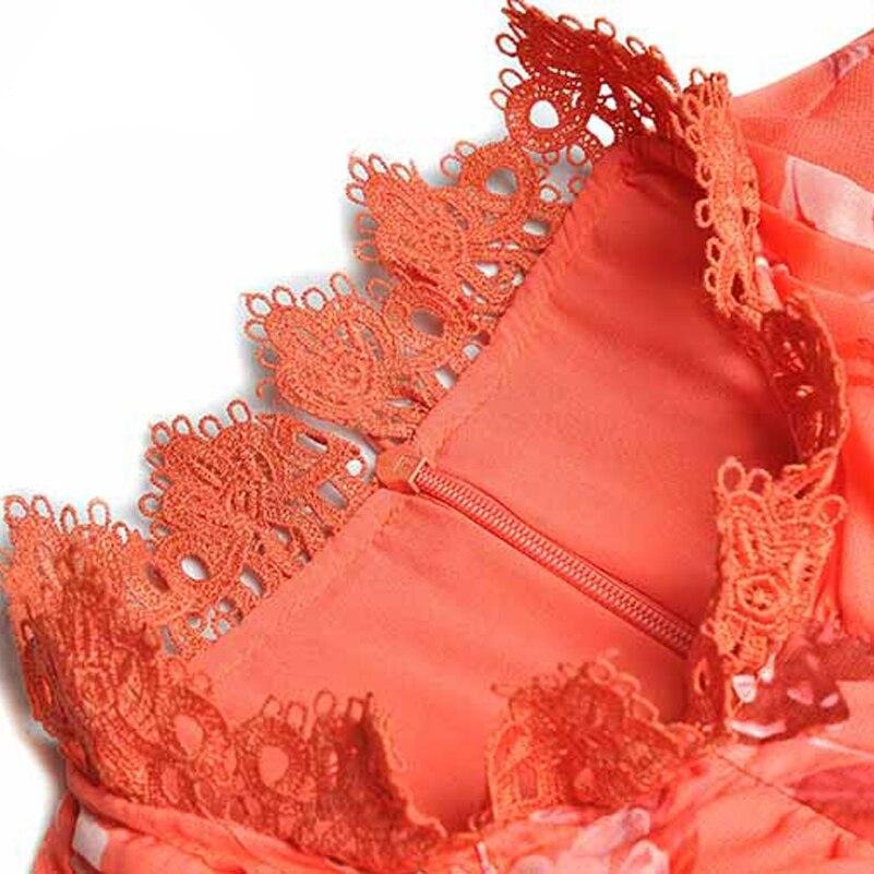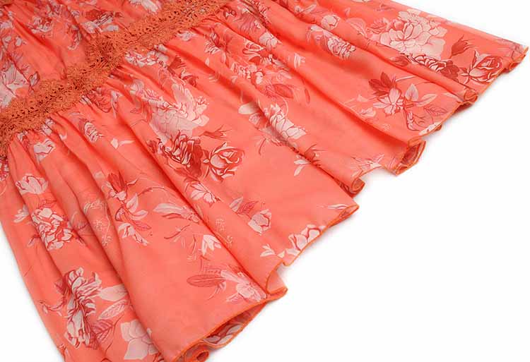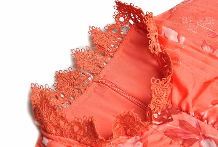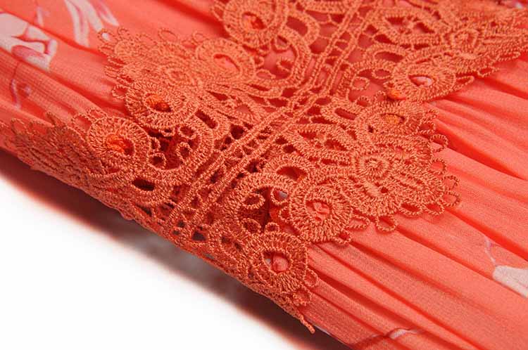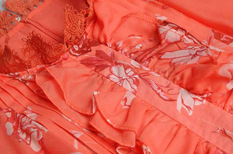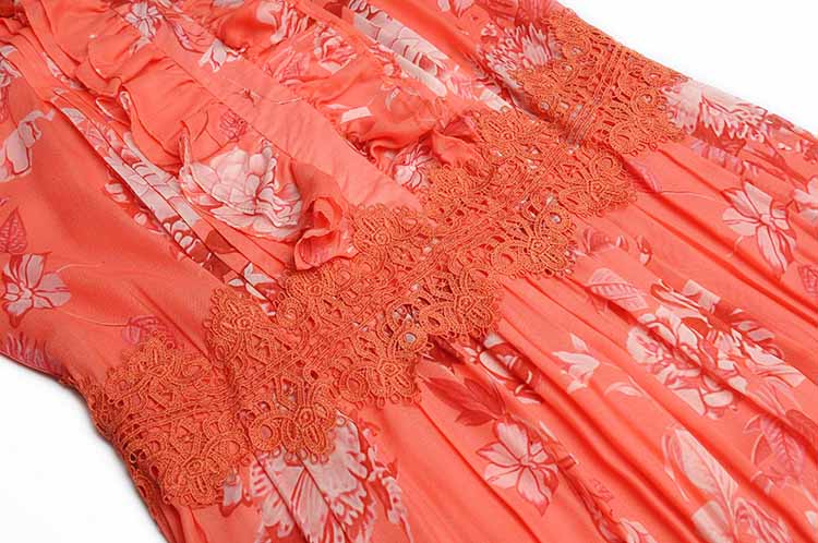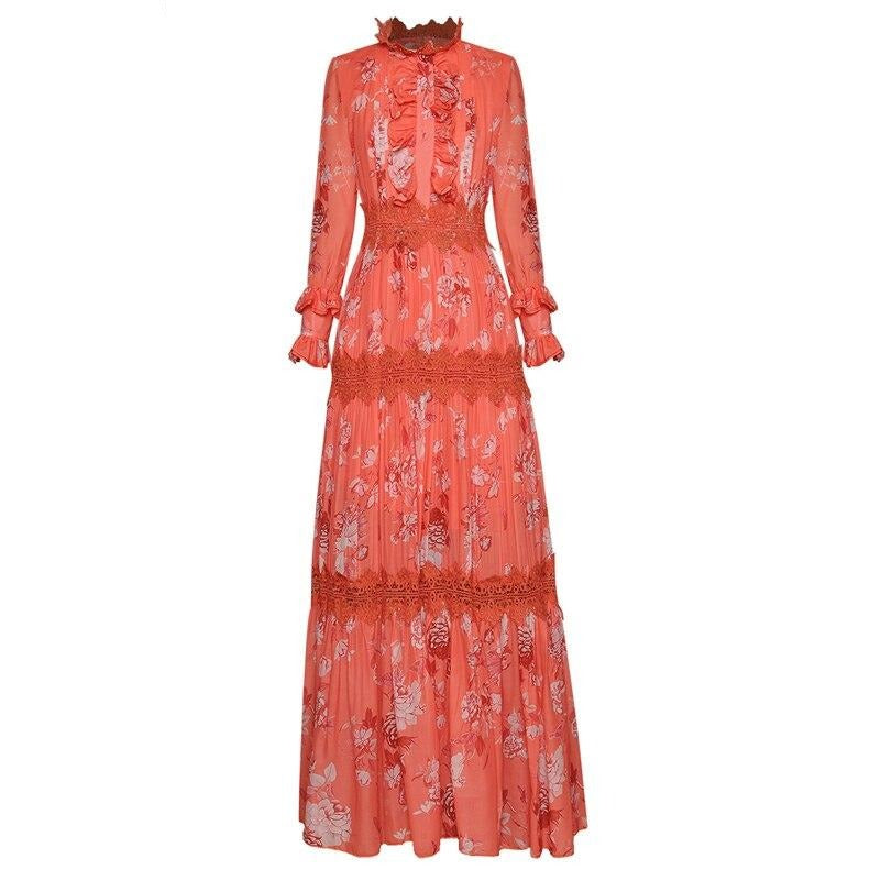 Women elegant Flower print Retro Hollow lace Ruffle Long dress