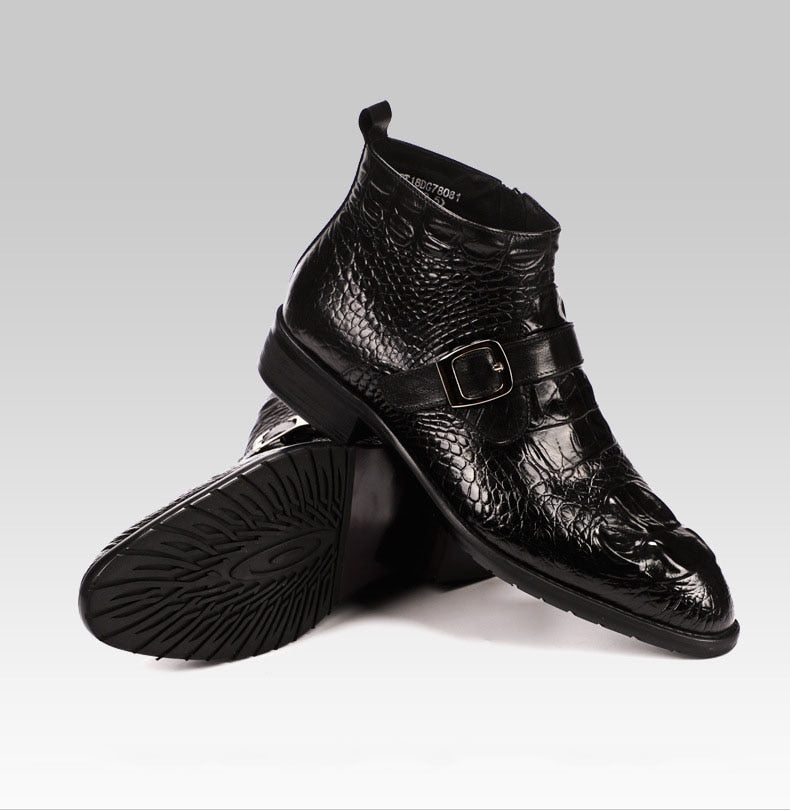 Handmade 2019 Hot Crocodile Pattern Mens Dress Boots Fashion Buckle Chelsea Ankle Genuine Leather Men Casual Boots