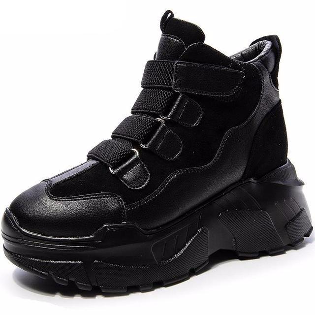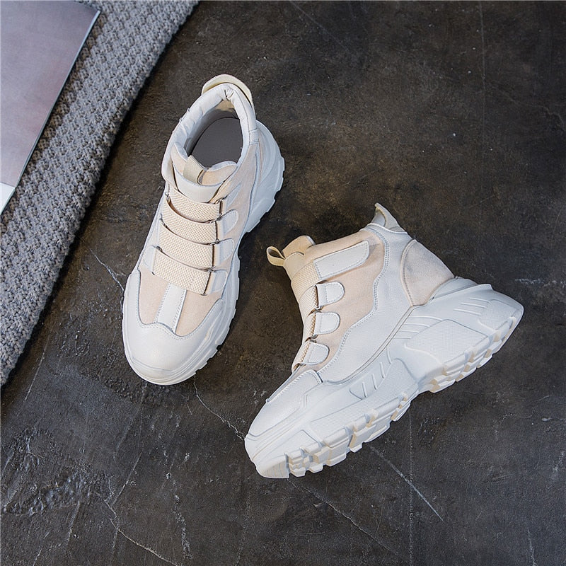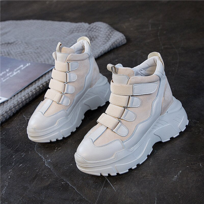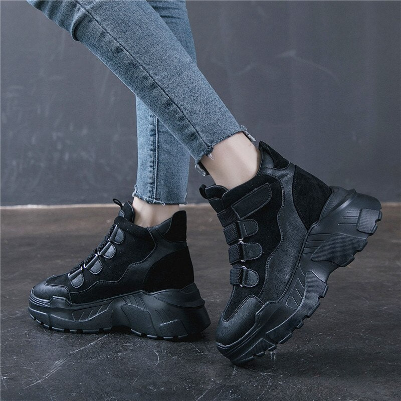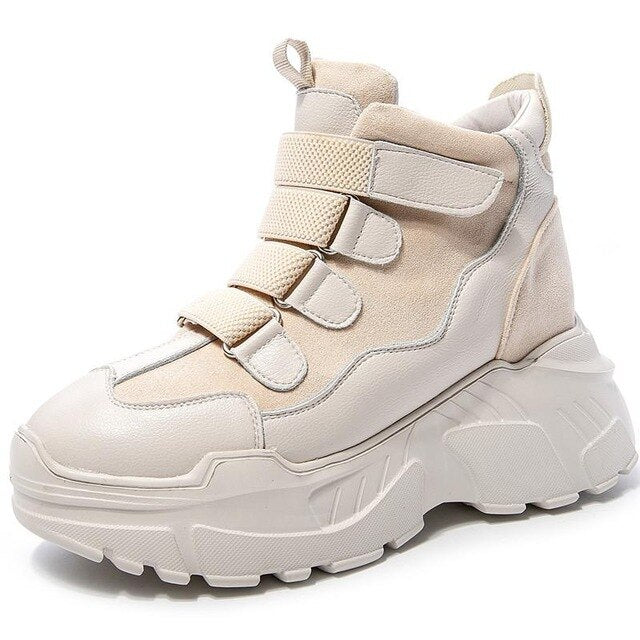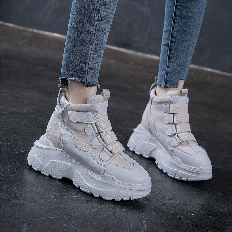 Genuine Leather 8CM Height Increaseing Women's Platform Sneakers Fashion High Top Women Chunky Trainers Lady Shoes