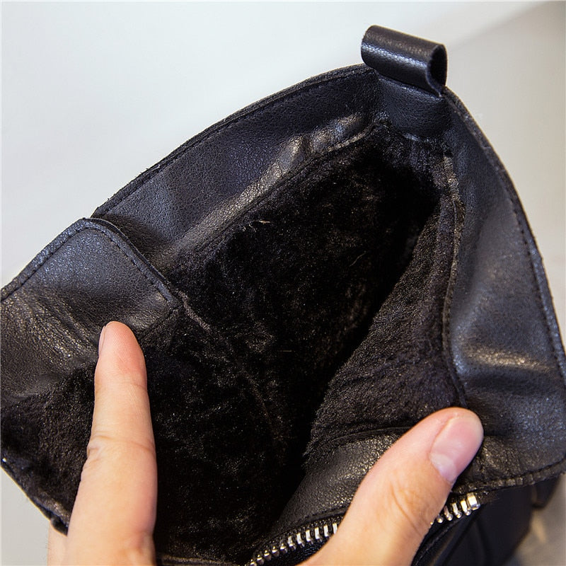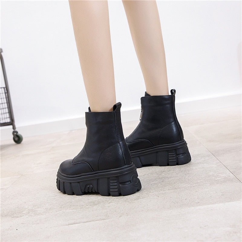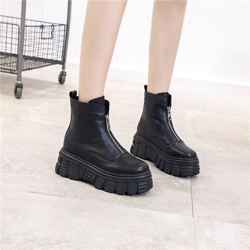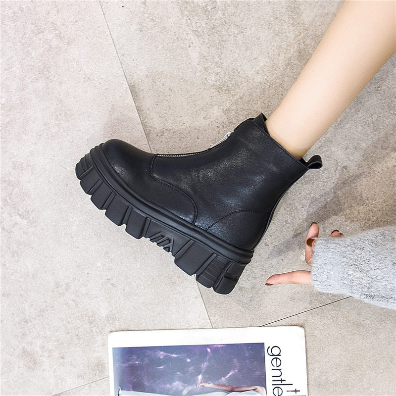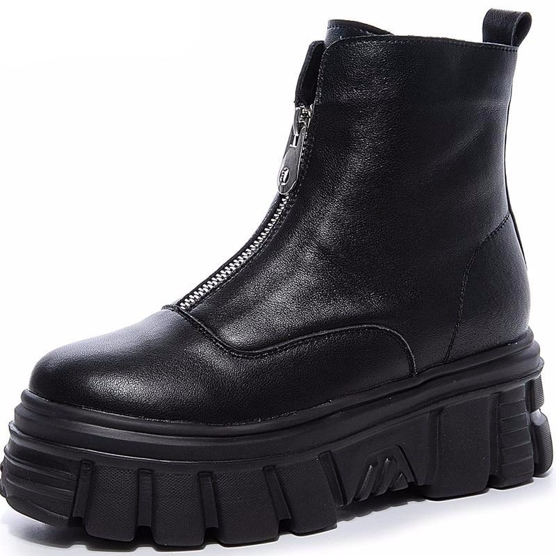 Genuine Leather Front Zipper Women' Ankle Boots 2019 Fashion Style Women Winter Warm Platform Boots Ladies Chunky Shoes