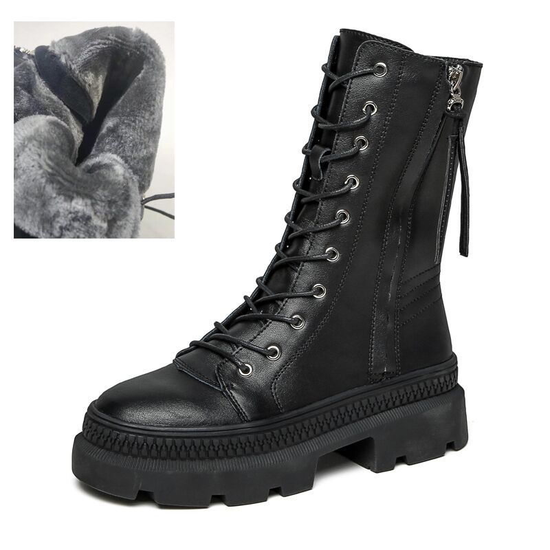 Leather Women's Platform Winter Boots Fashion Style Women Chunky Martin Boot Ladies Shoes Zipper Female footwear