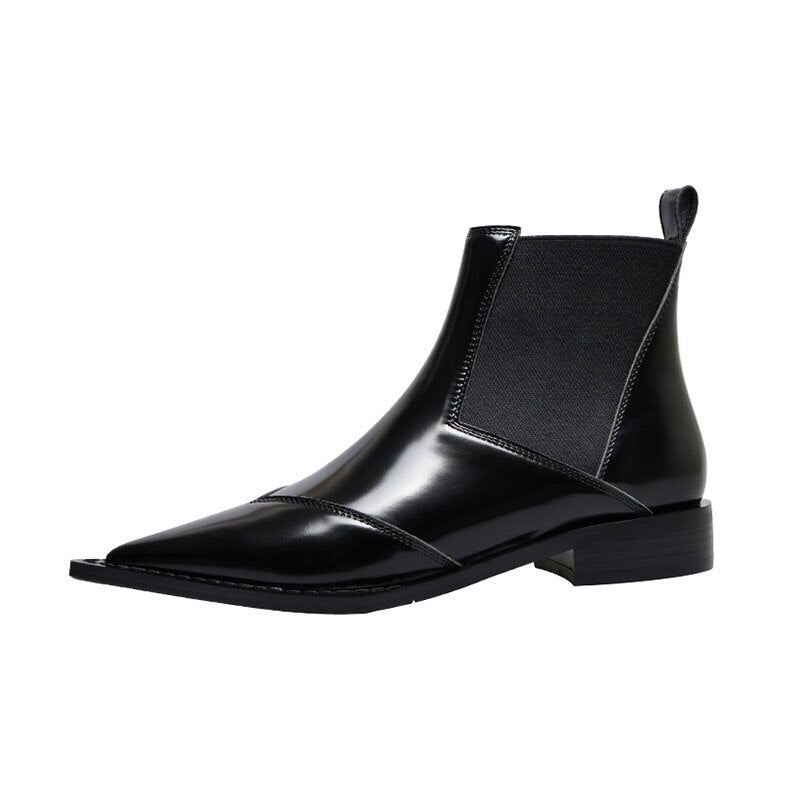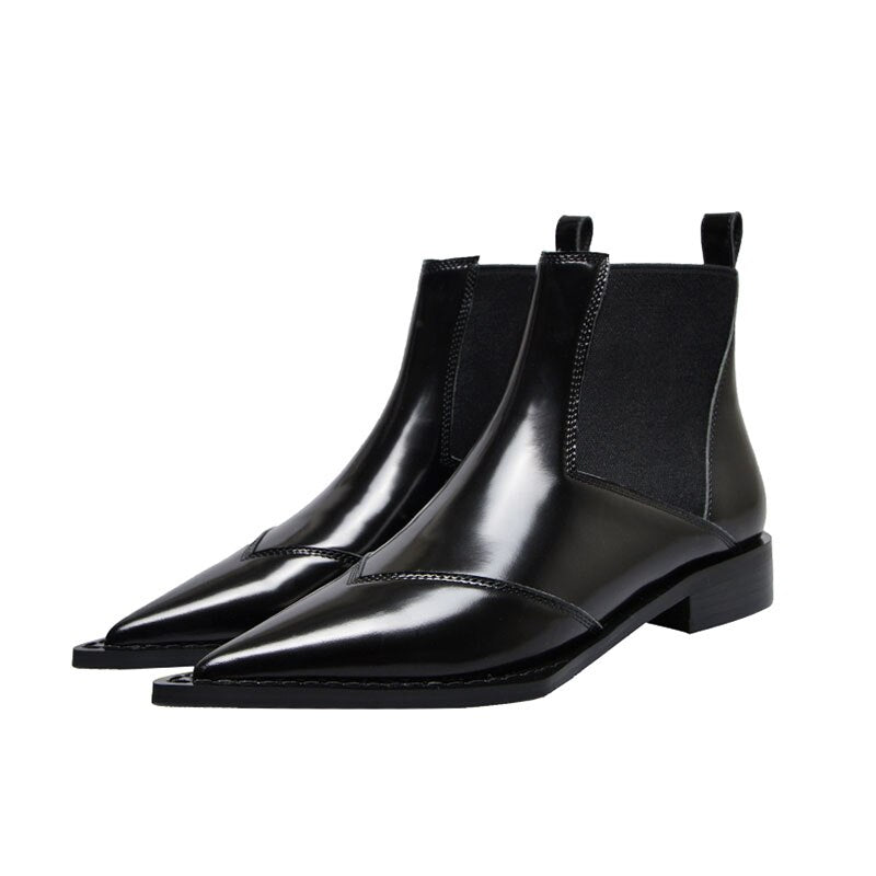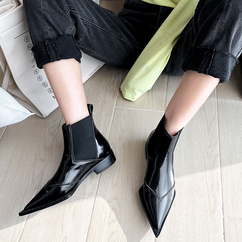 Women Motorcycle Boots Slip-on Low Heels Black Shoes