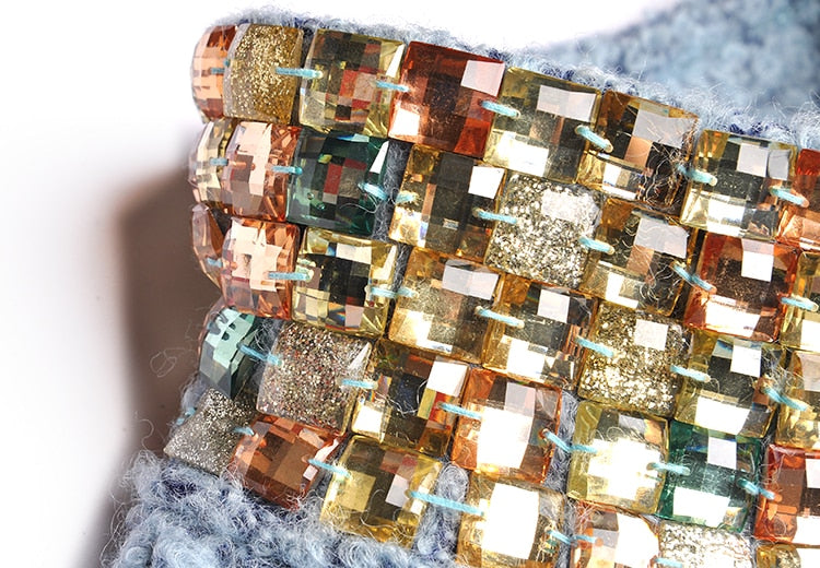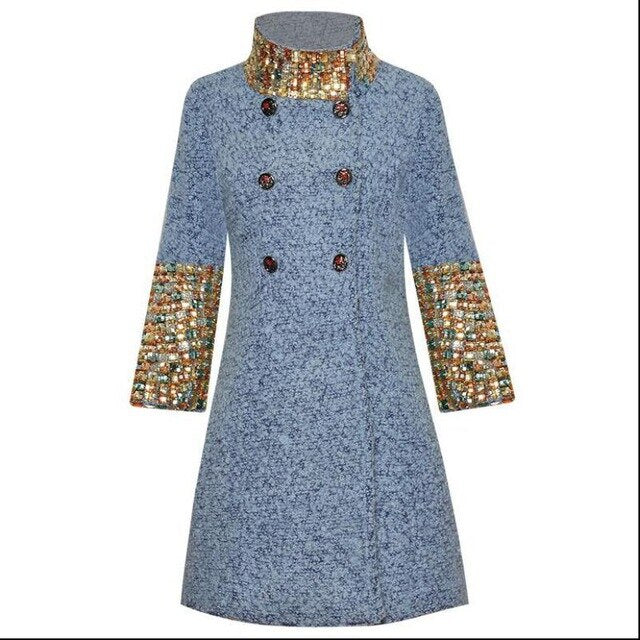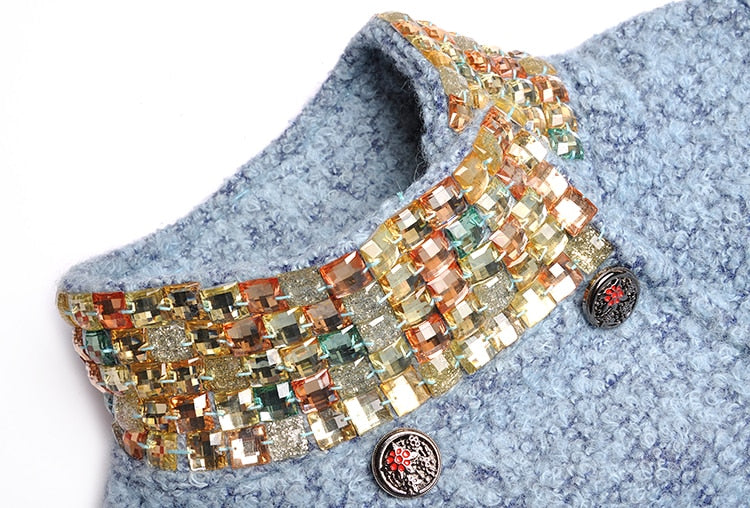 Women Stand Up Collar 3/4 Sleeve Heavy Diamond Short Woolen Coat Elegant Autumn And Winter Outwear New