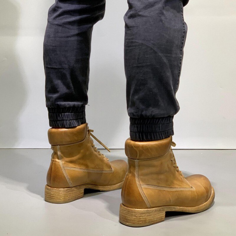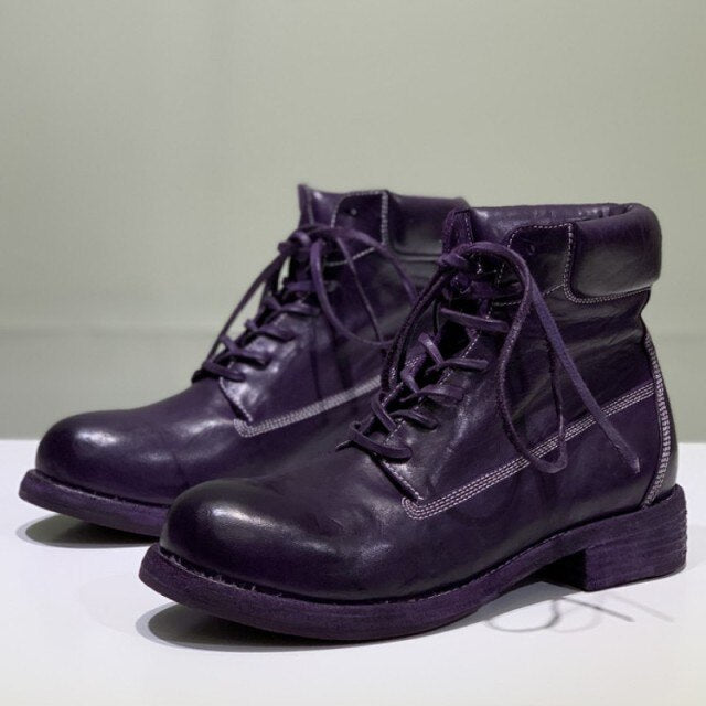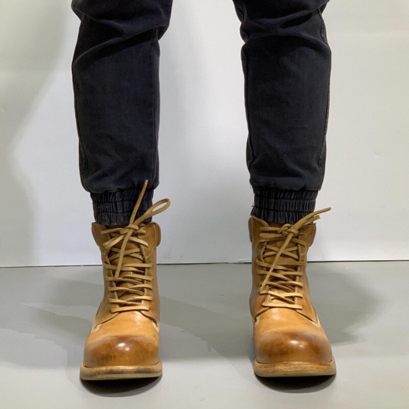 Mens Work Boots Lace Up Genuine Leather High Top Shoes