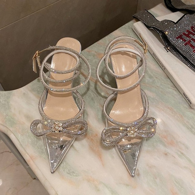 Rhinestone Butterfly-knot Sandals Fine Heel Women