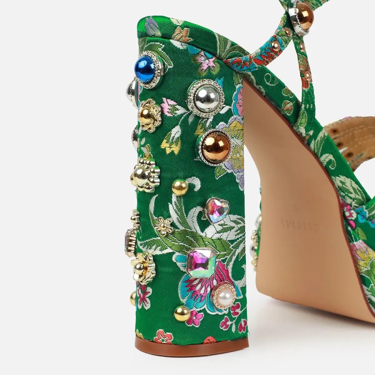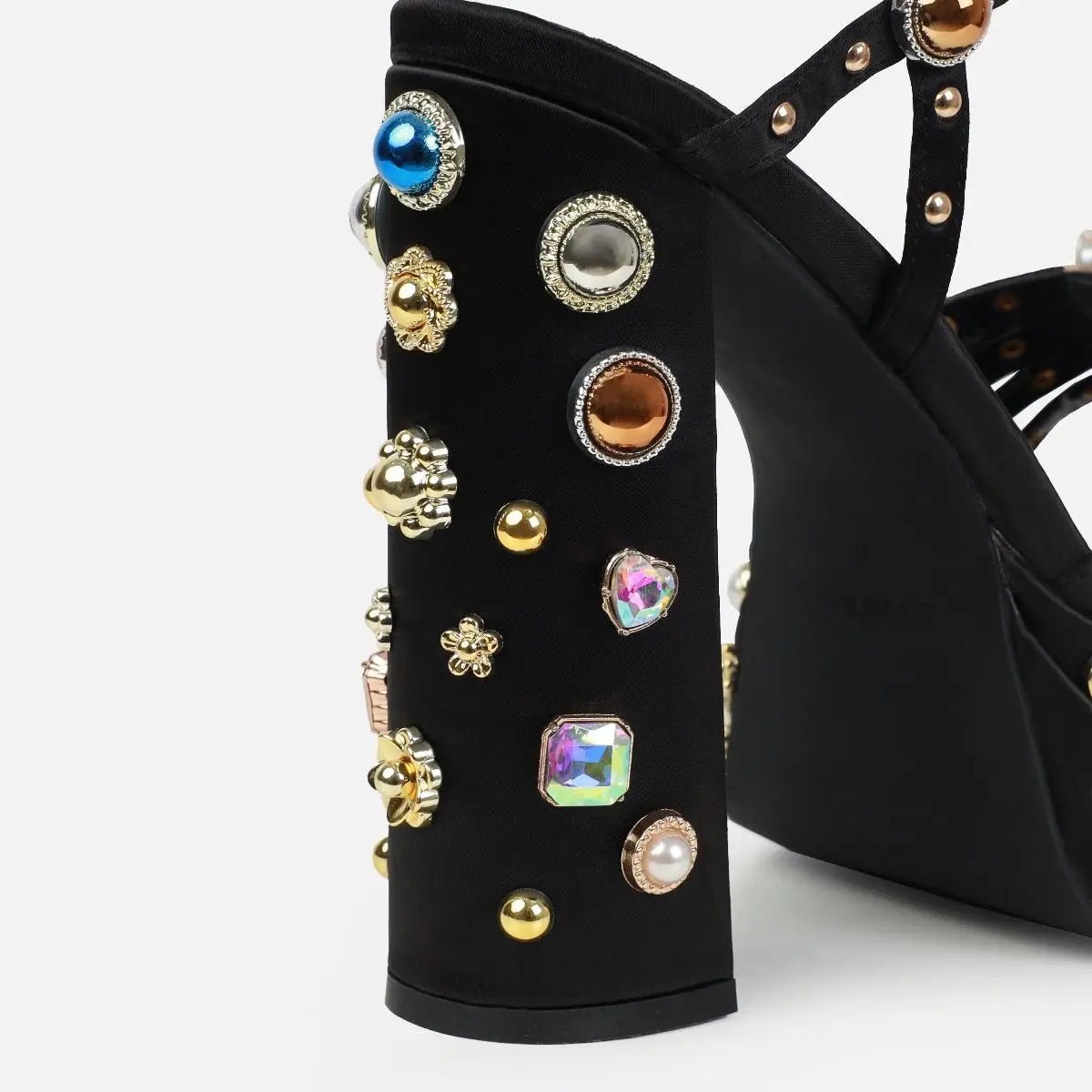 - Model Number: Luxury Rhinestone Chunky Heels Ankle Strap Slingback Sandals