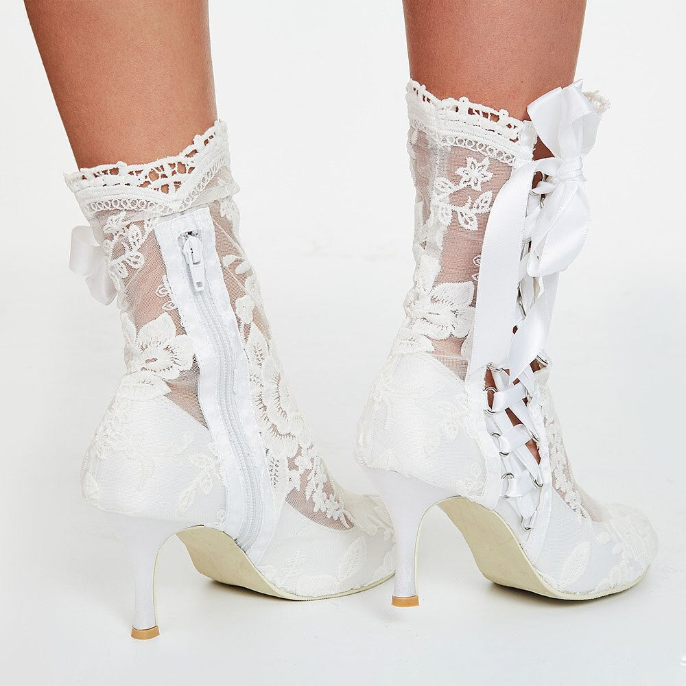 Romantic Floral Lace Ribbons Bandage Ankle Boots Women