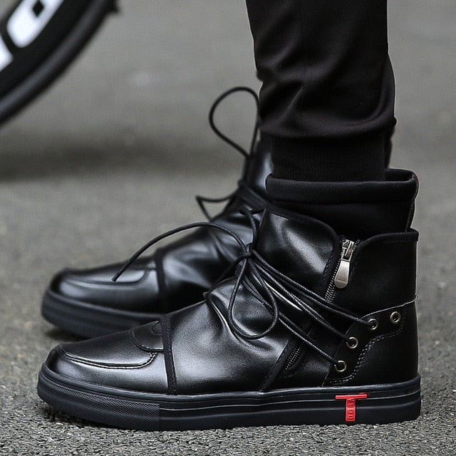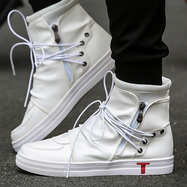 Men Leather White Black High Ankle Work Dress Male Low Heel Oxfords Boots autumn boots Men shoes 2019