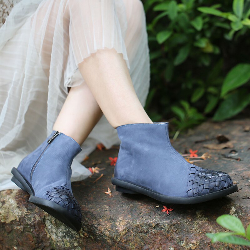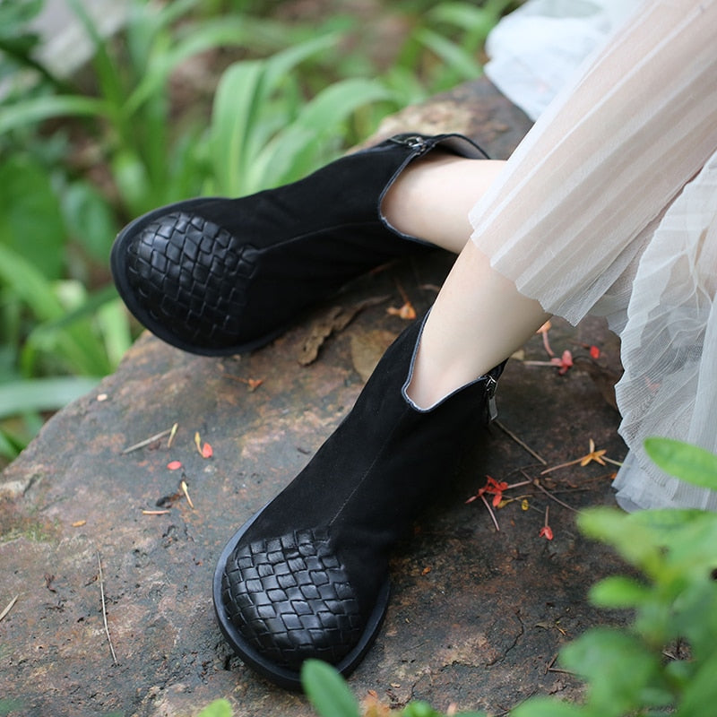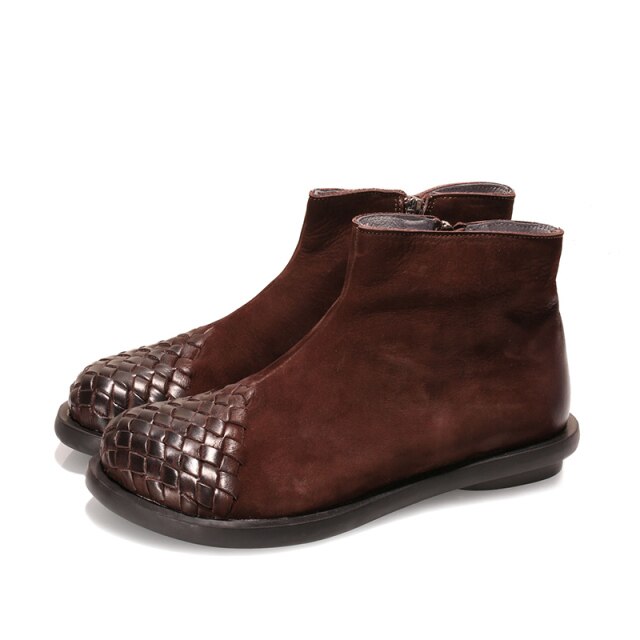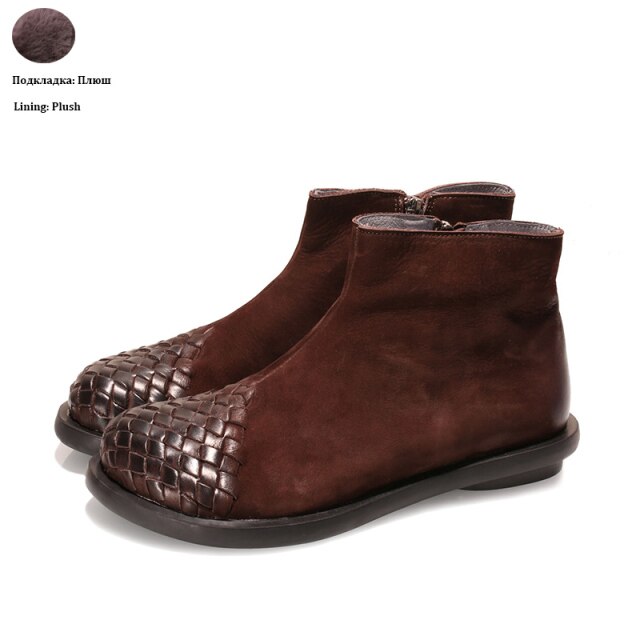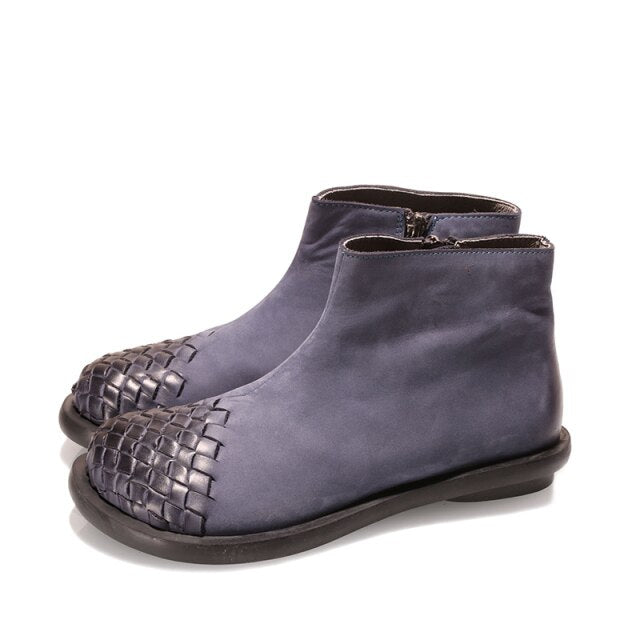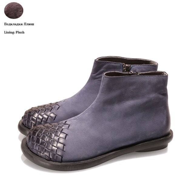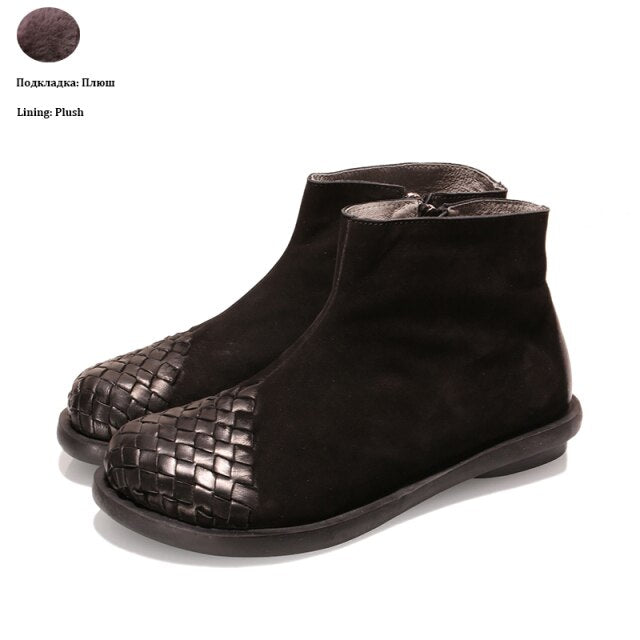 New Woven Design Female Low Cut Booties Lady Vintage Snow Shoes