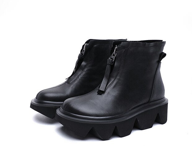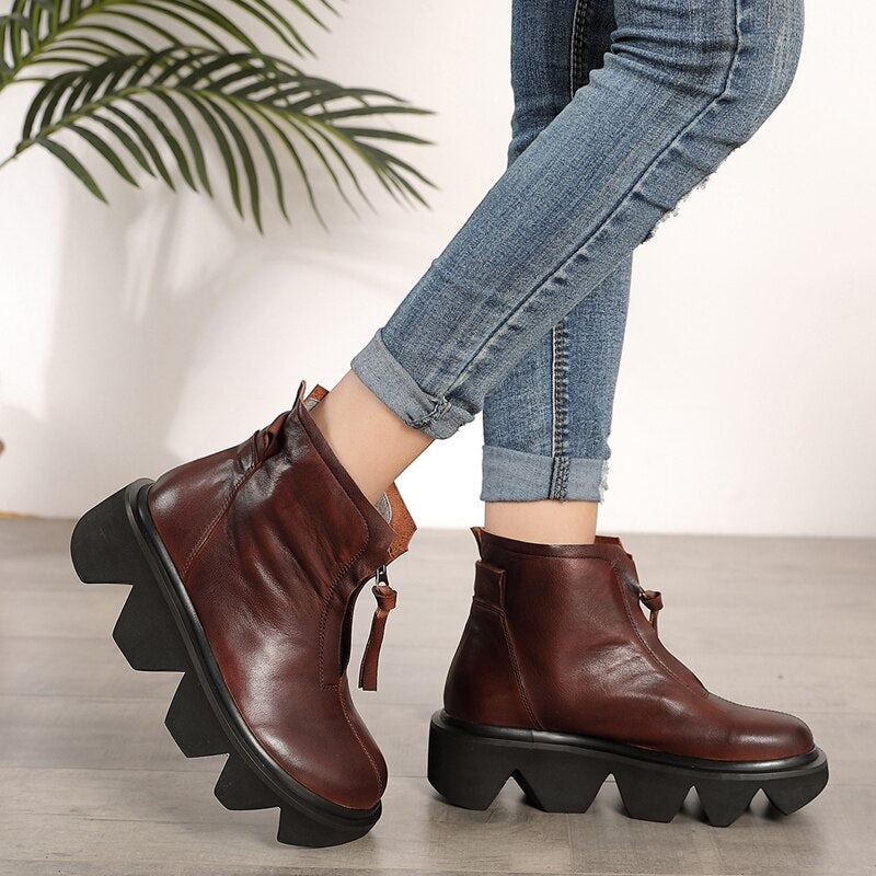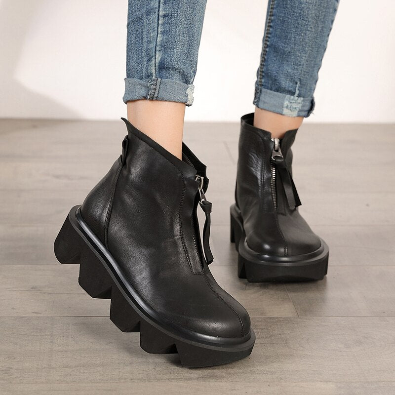 top quality leather women's boots autumn and winter new thick-bottomed round head boots cowhide Martin boots