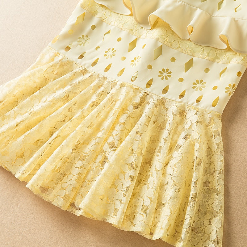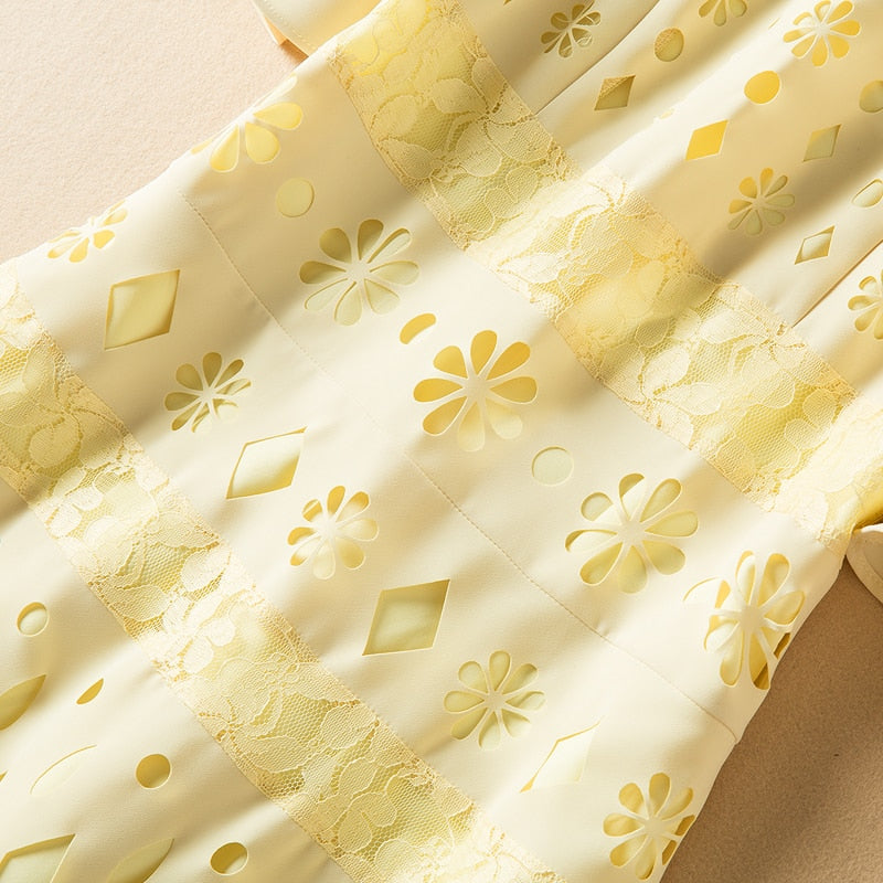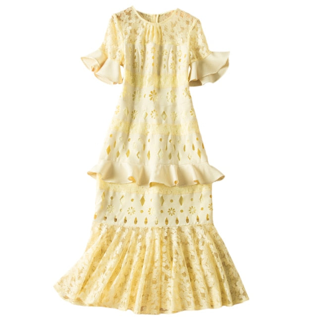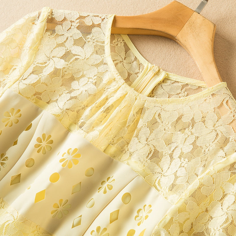 Fashion Short Sleeve Lace Patchwork Hollow Elegant Party Dress