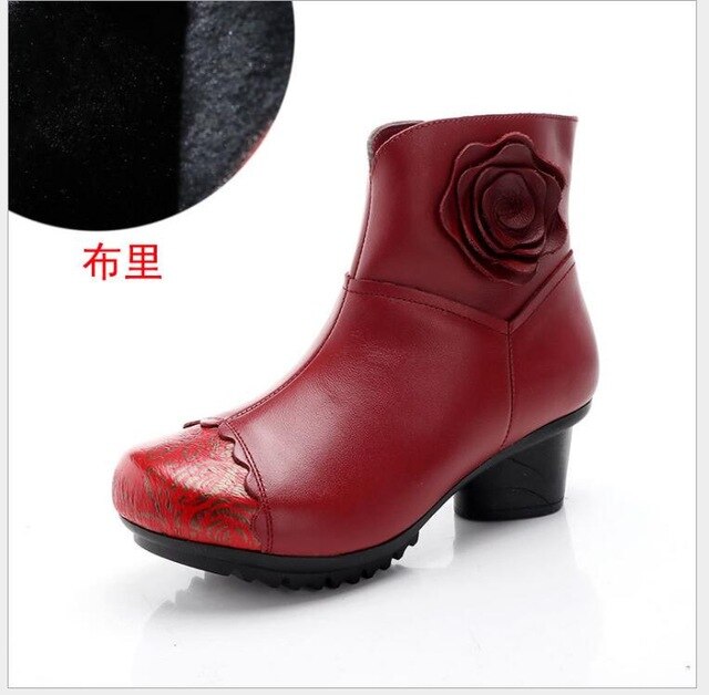 New Cow Leather Ankle Boots Handmade Lady Shoe Genuine Leather Winter Boots