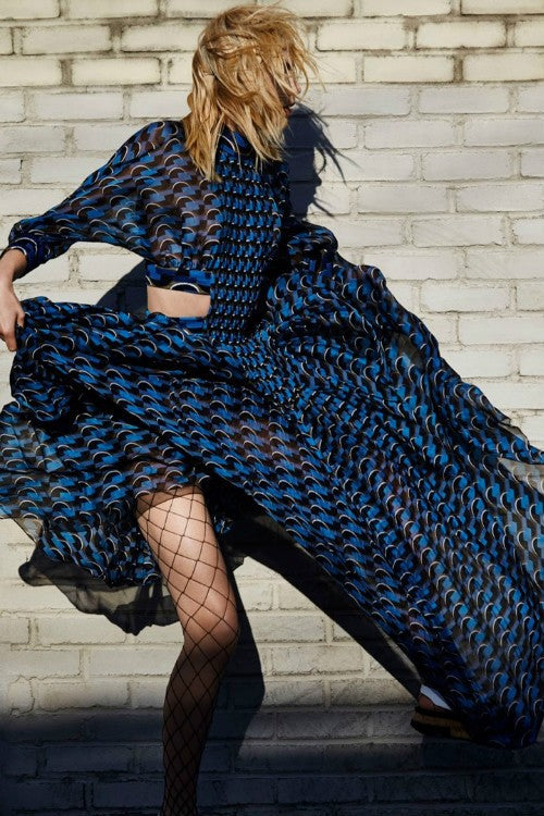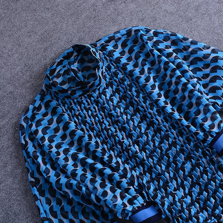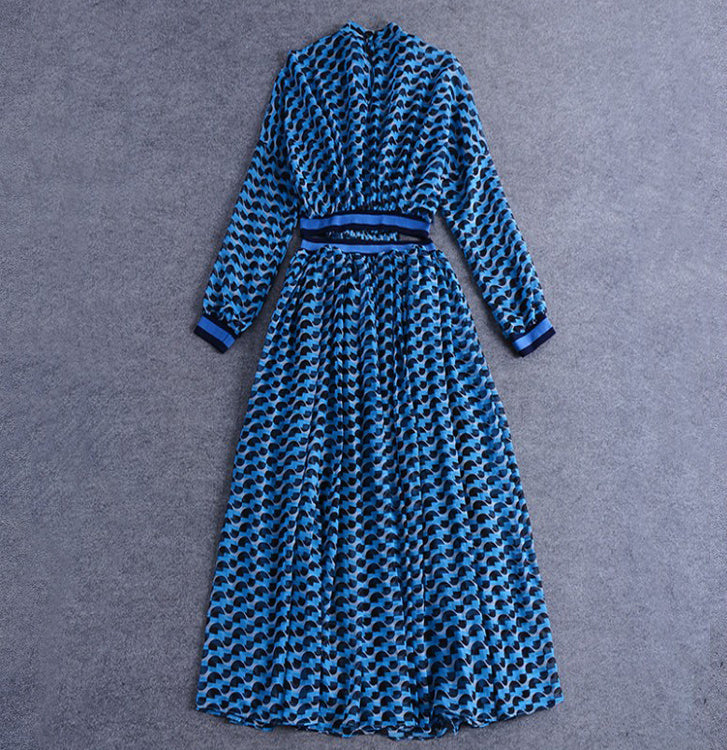 Blue Print Silky Fabric Sexy Banquet Women Dress
