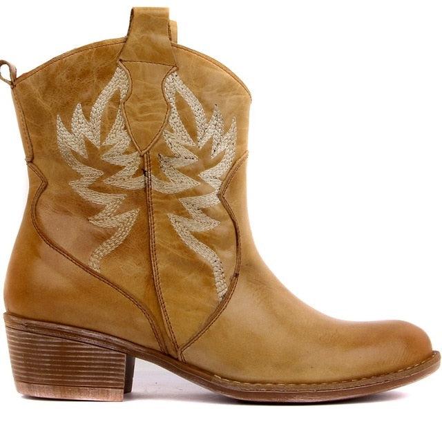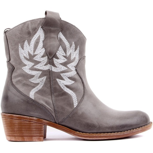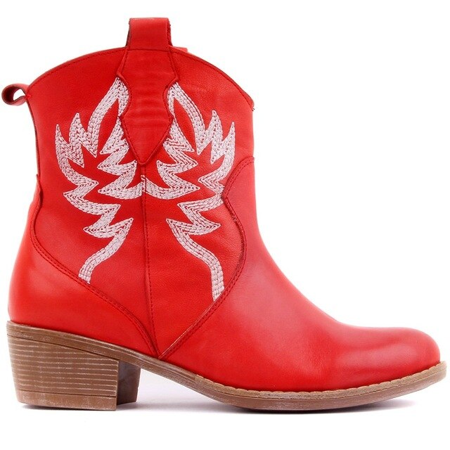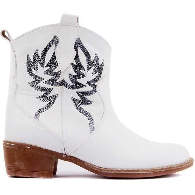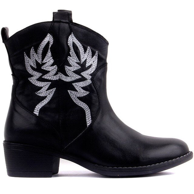 Genuine Leather Embroidered Women Boots Ankle Boots Motorcycle Boots Female Autumn Winter Shoes Woman Punk Motorcycle Boots
