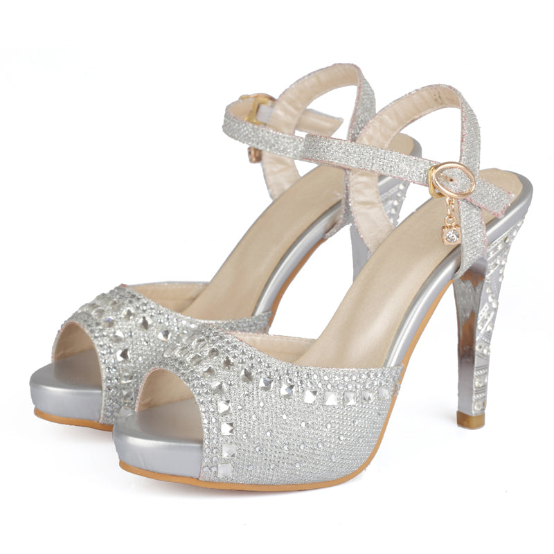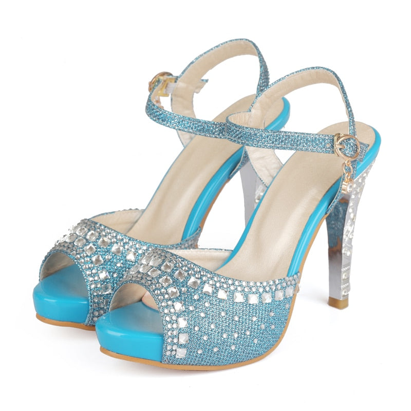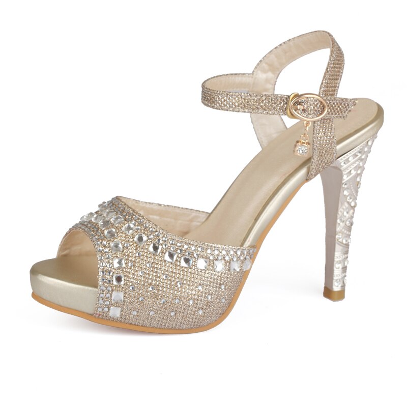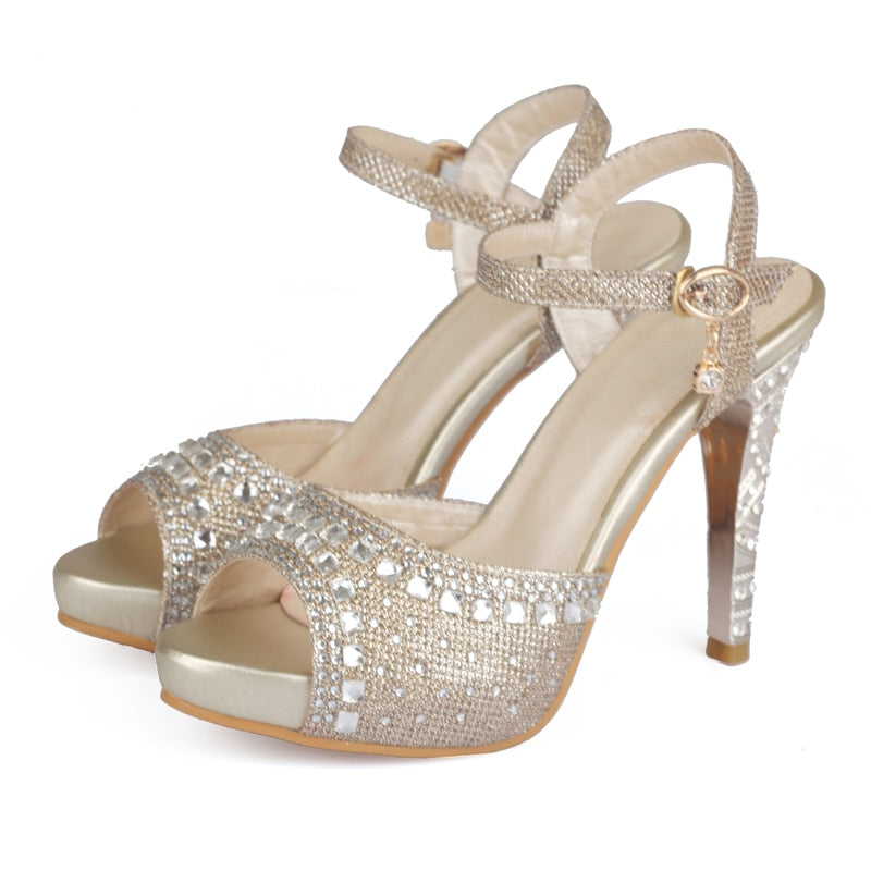High Quality Plus Size 33-43 Spike High Heels Sandals Women Peep Toe Buckle Strap Party Wedding Shoes Woman