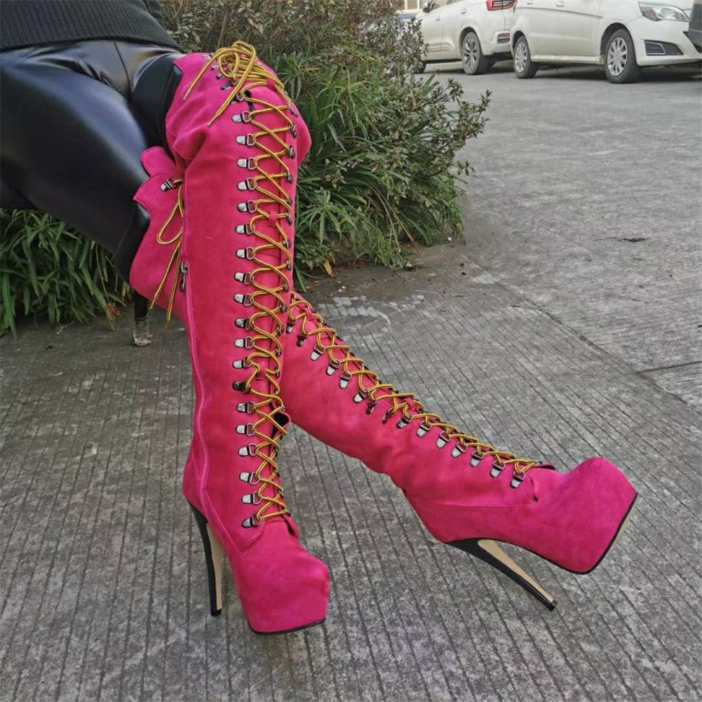 New Plus Size 34-47 Cross Tied Party Over The Knee Boots Ladies Sexy Thigh High Boots Women High Heel Shoes Woman