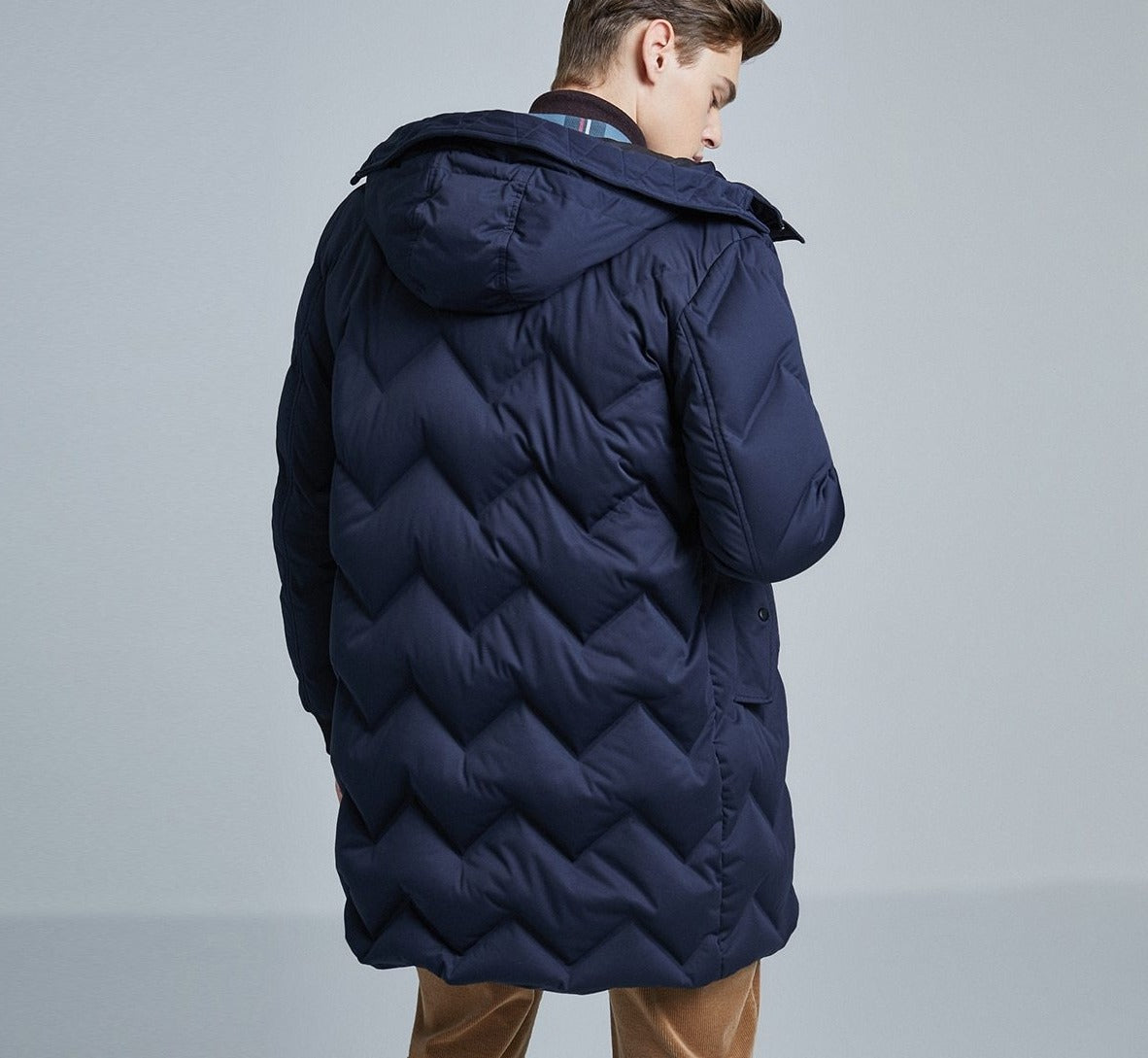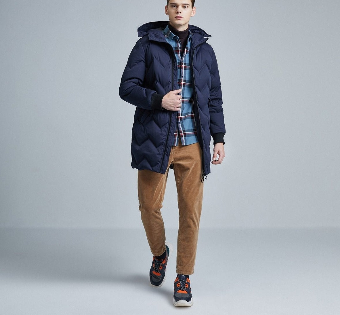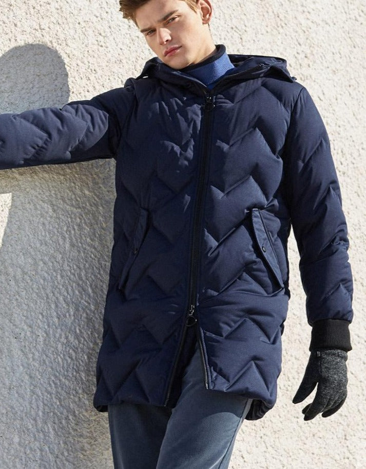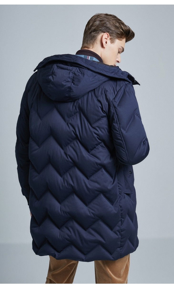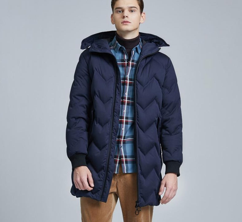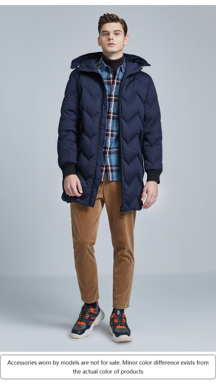 Men's Mid-length Hood Drawstring Mid-length Down Jacket