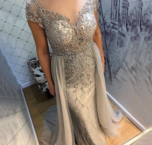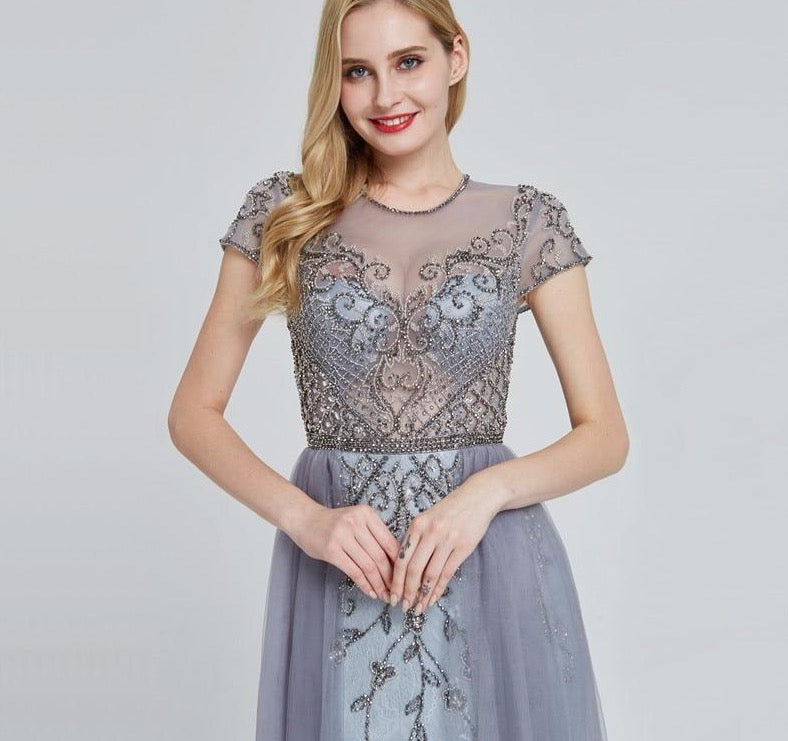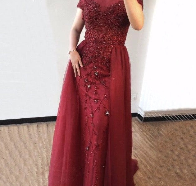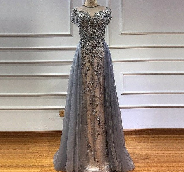 Crystal Short Sleeve Evening Dress Design Luxury Mermaid Sexy Formal Party Gown