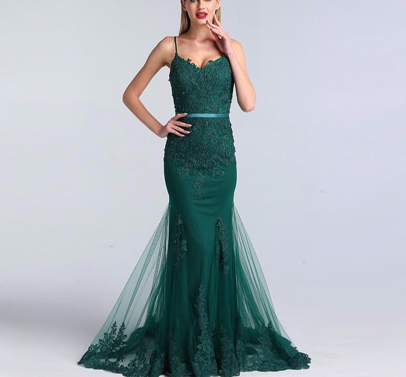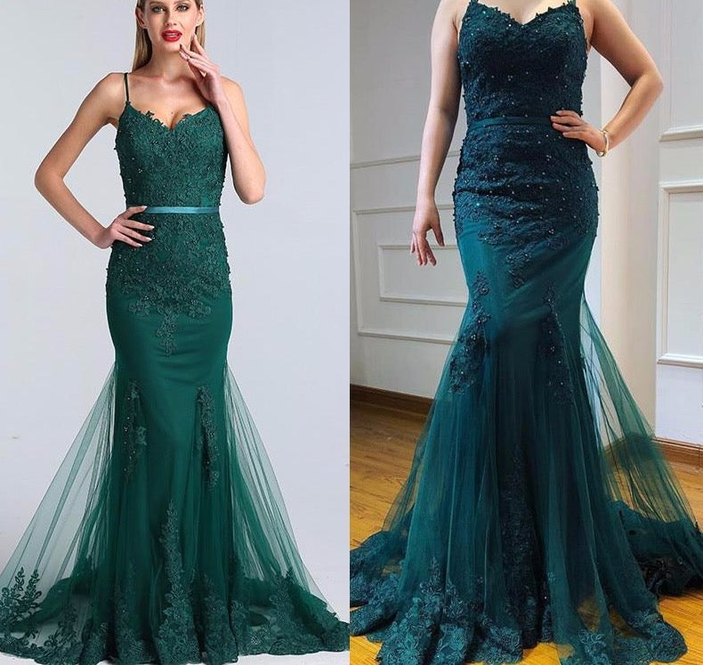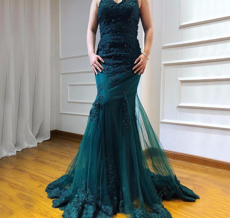Green Sexy Sweetheart Lace Crystal Evening Dress Dubai Luxury Mermaid Formal Party Gown Real Photo